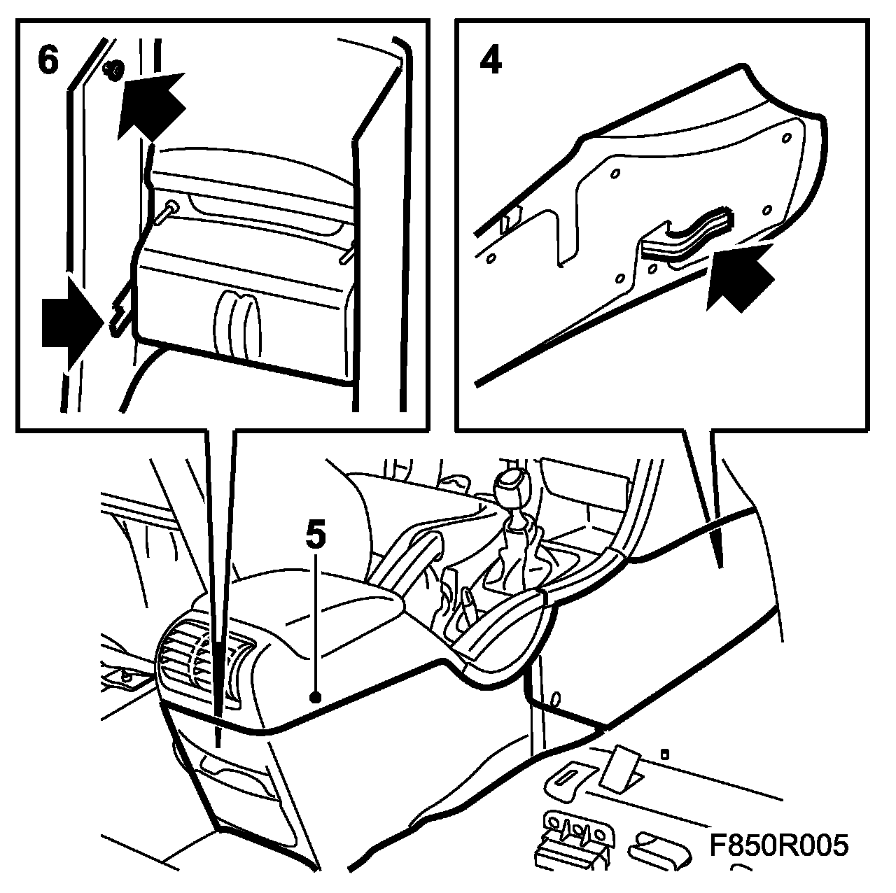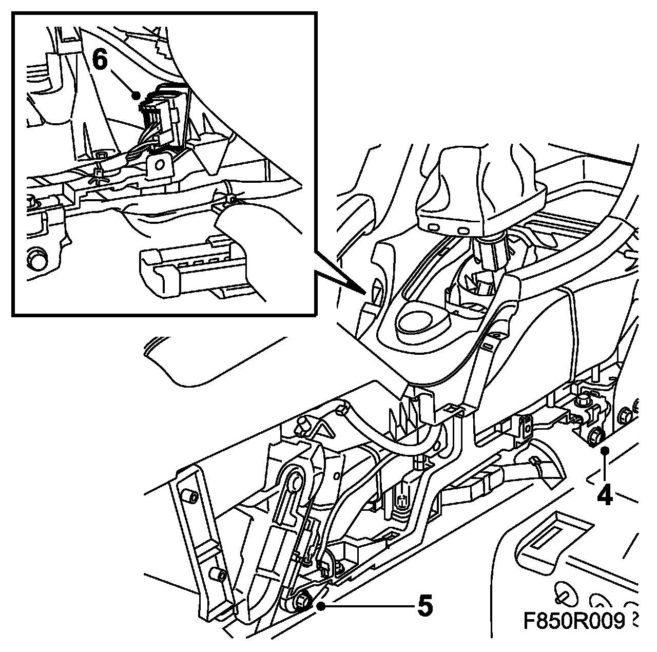 4. Fit the front legroom adjuster screws on the center console's aluminium frame.
