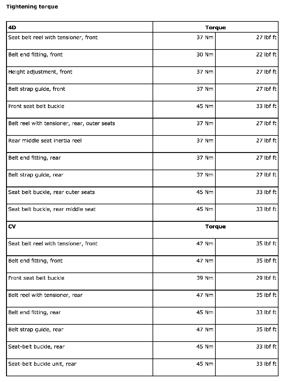 Tightening Torque: