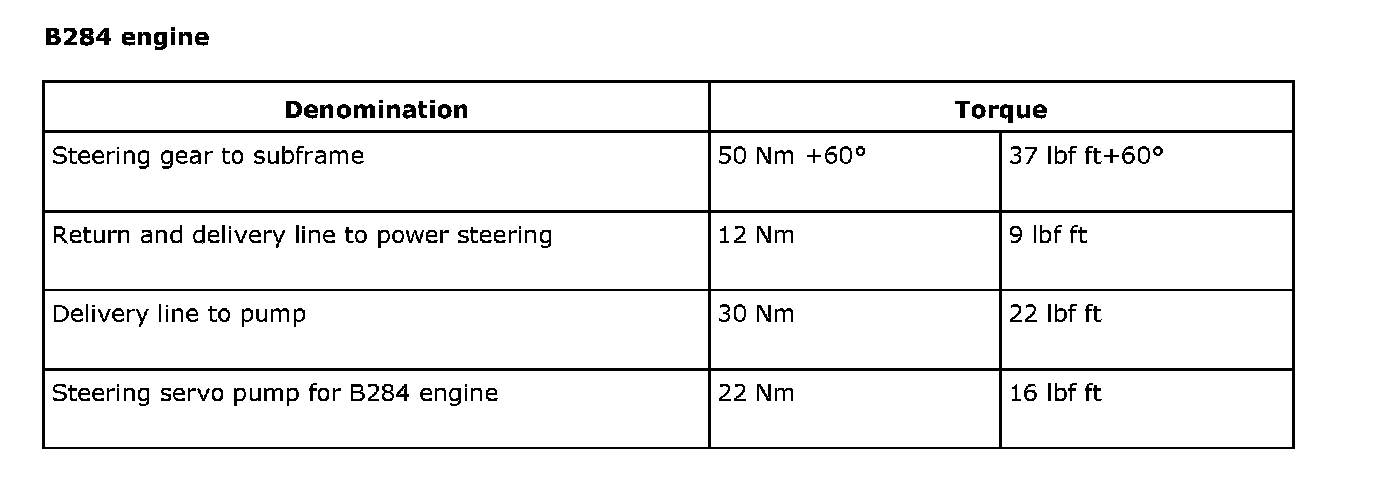 Tightening torques