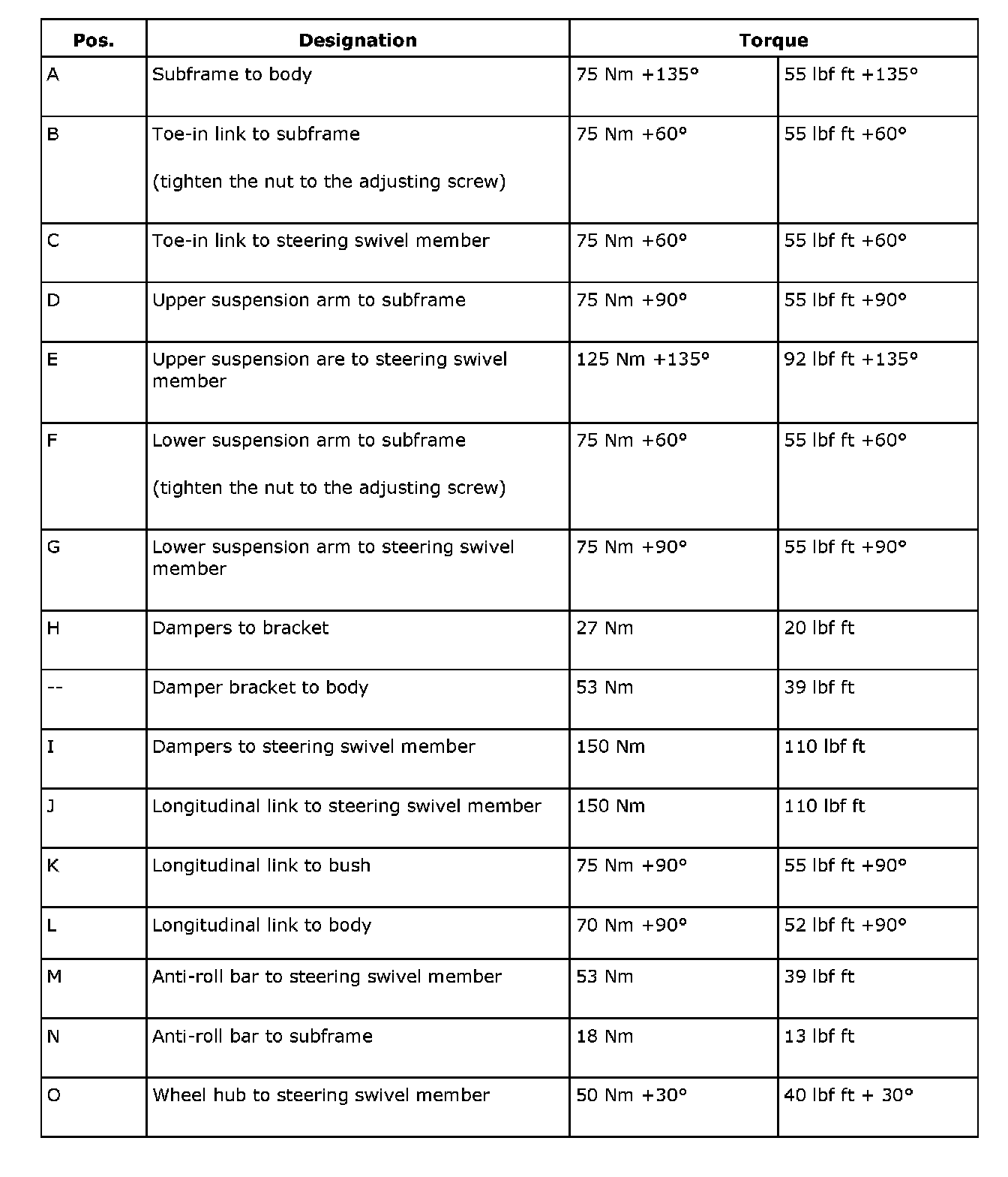 Tightening torques