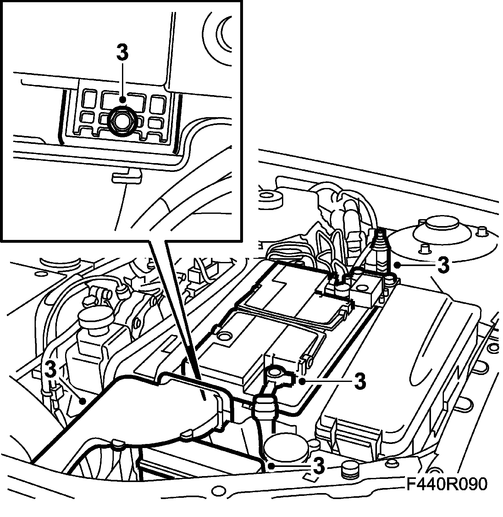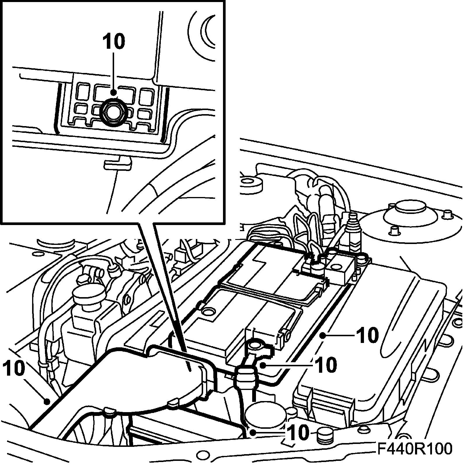 9. Plug in the connectors under the control module. Plug in the control module connector and fit the bonnet switch and battery tray.
