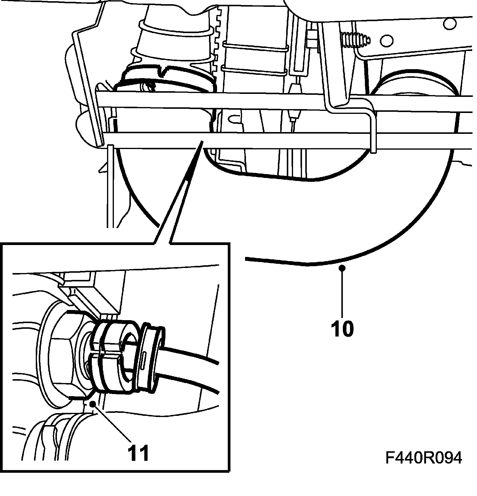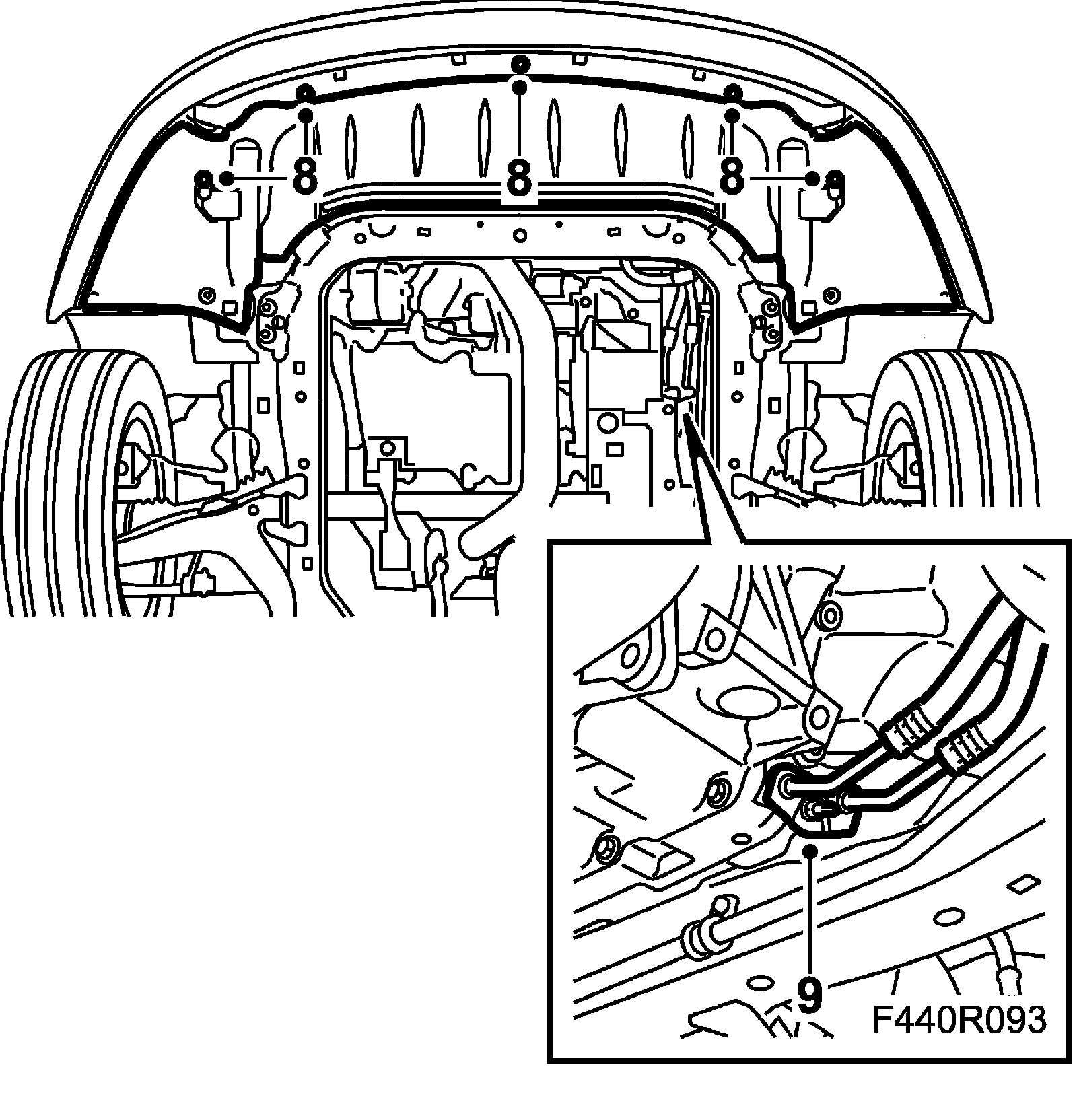 7. Fit the spoiler shield. CV: Fit Chassis reinforcement, front subframe, CV