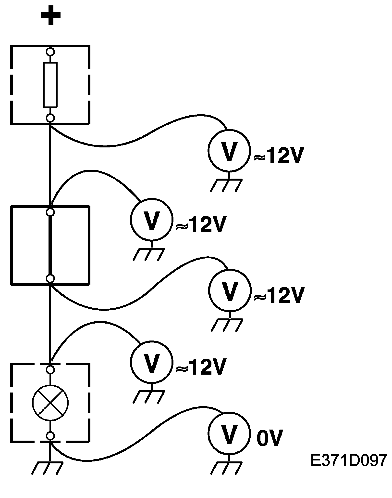 4. When testing the output side of a switch/control module, it is best to start testing from the component and then gradually work your way towards the load. The voltage reading will cease as the location of the open circuits is passed.