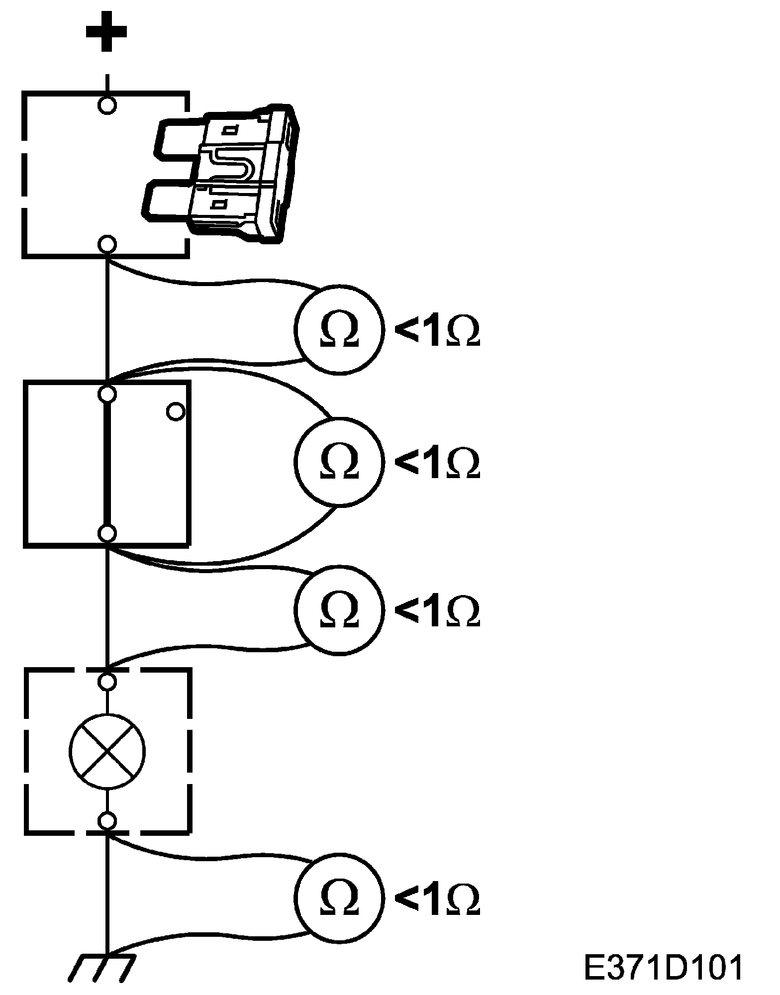 An ohmmeter must not be used for testing components containing semi-conductors, e.g. control modules and time delay relays, etc.