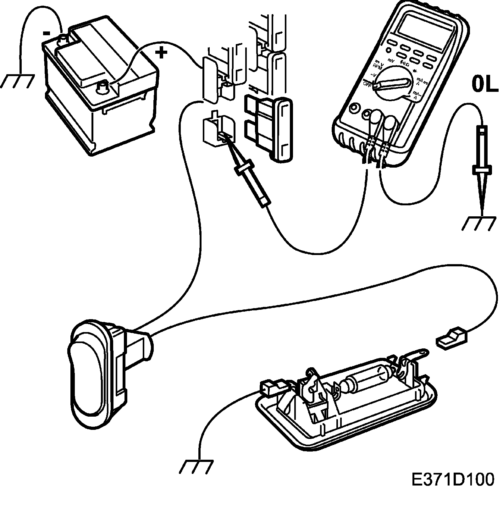 4. Carefully jiggle the wiring harness and check that the multimeter shows a constant infinite value (OL).