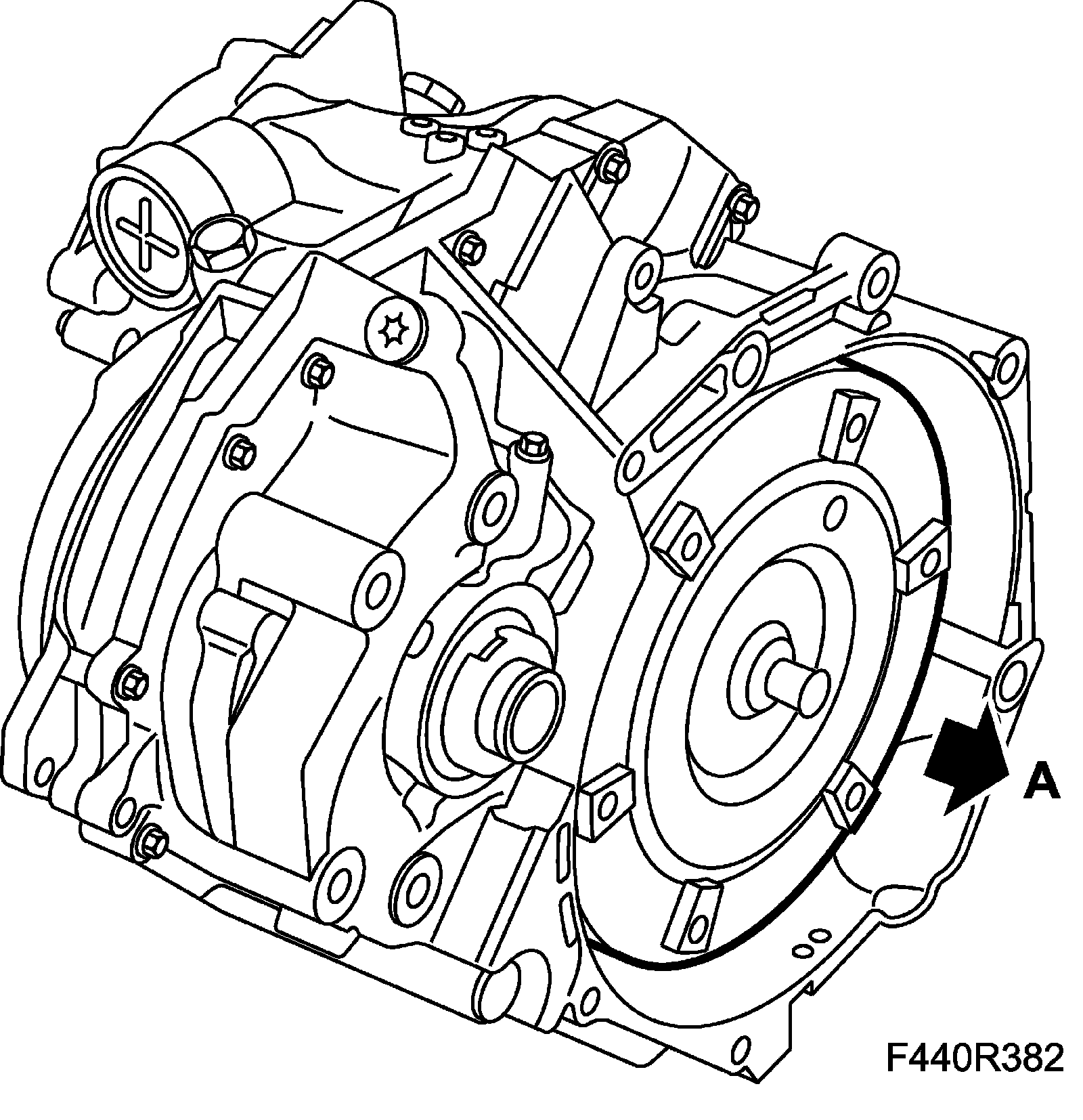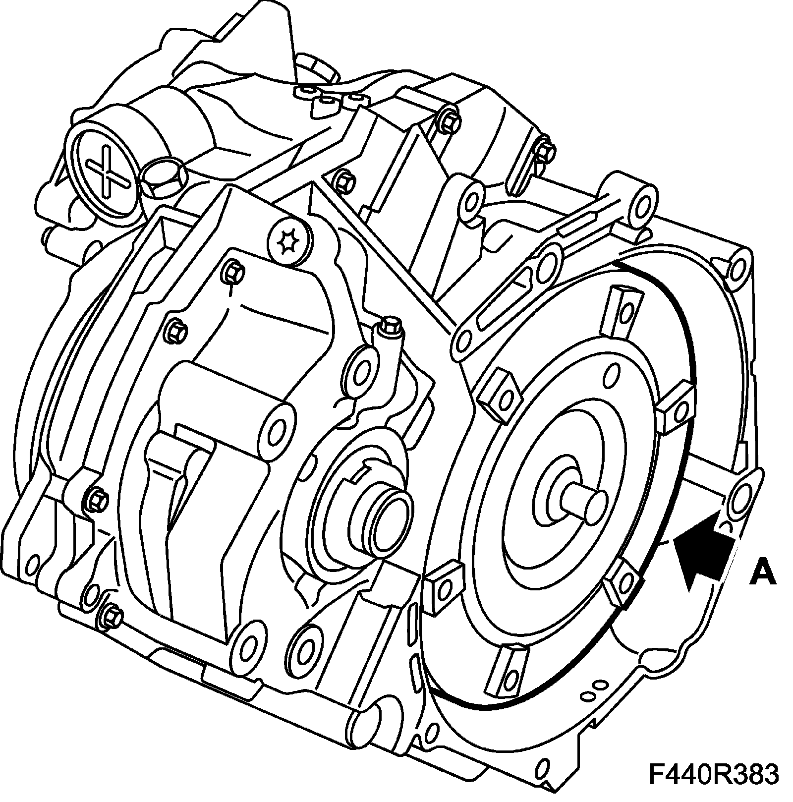 3. Lift out the torque converter (A). Collect any spilled oil.