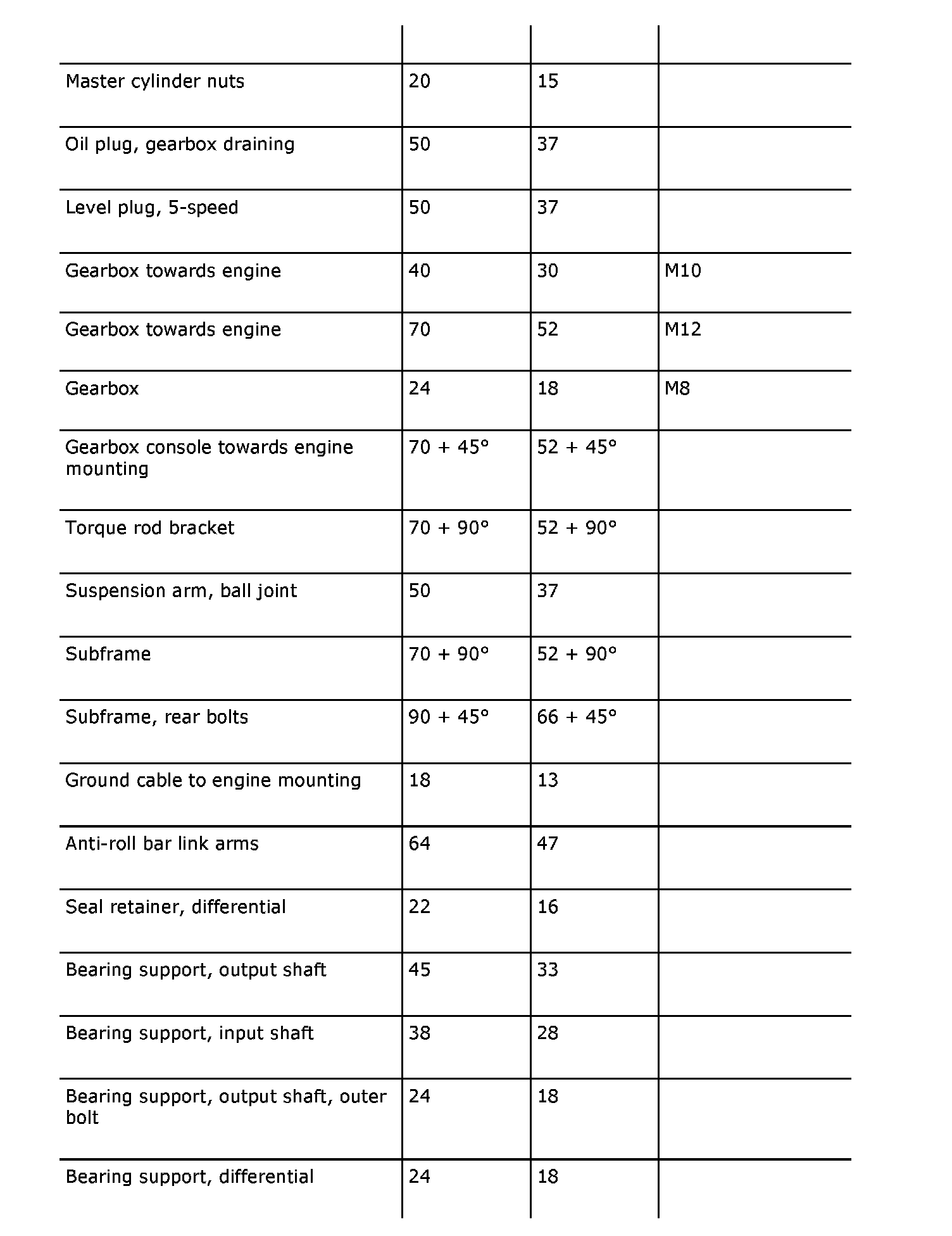 Tightening Torques (part 1):