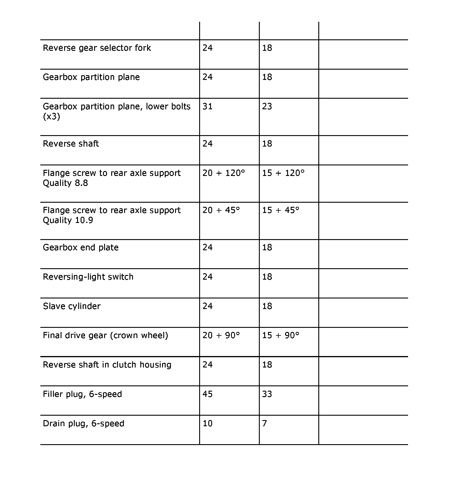Tightening Torques (part 3):