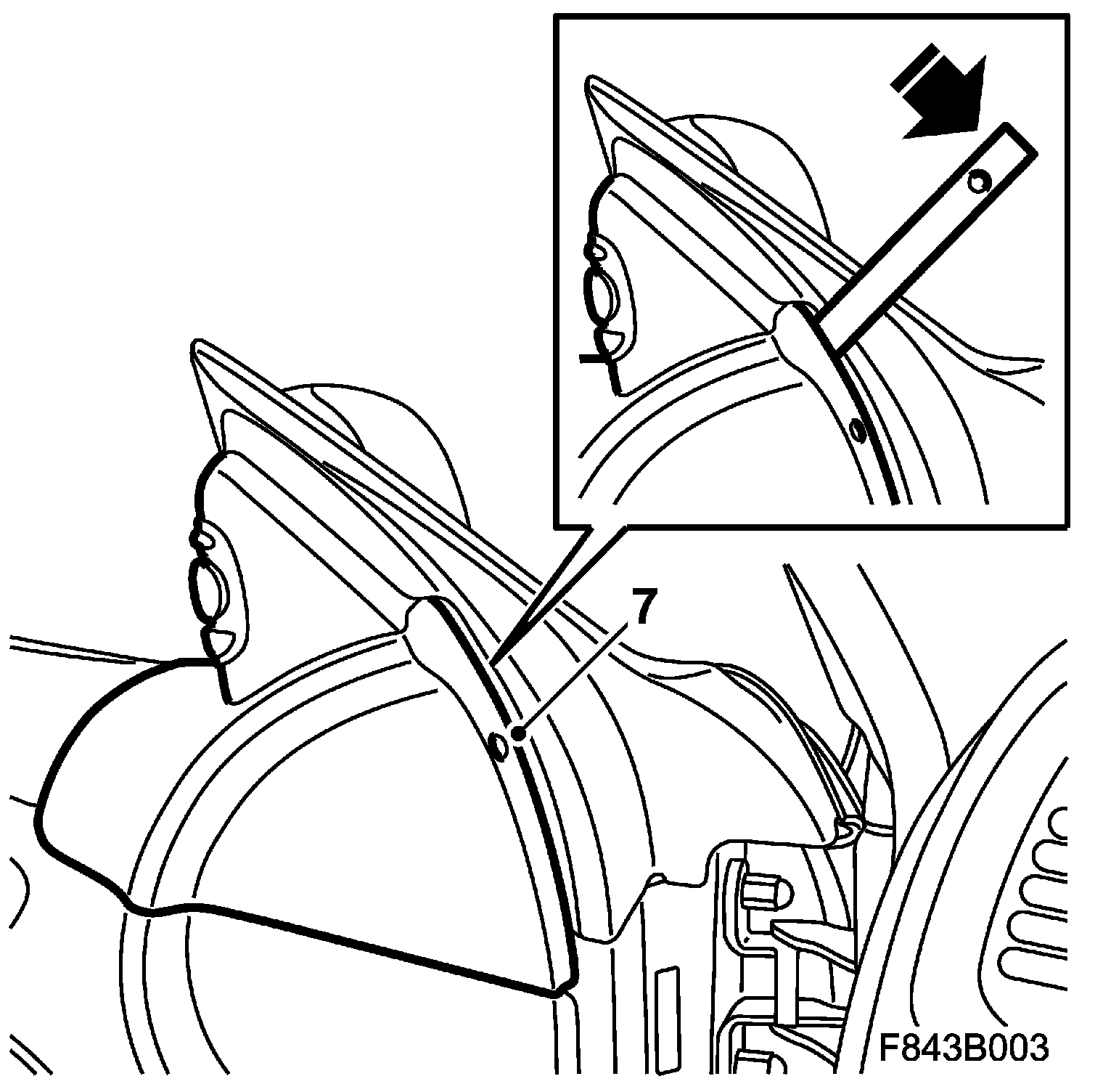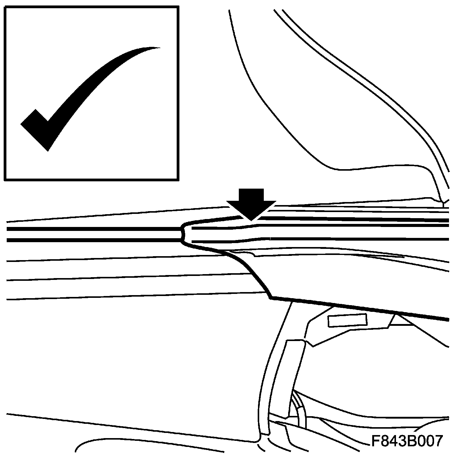 11. Check the outer and inner window seal (B). Check with the window down that the seal is not damaged or creased.