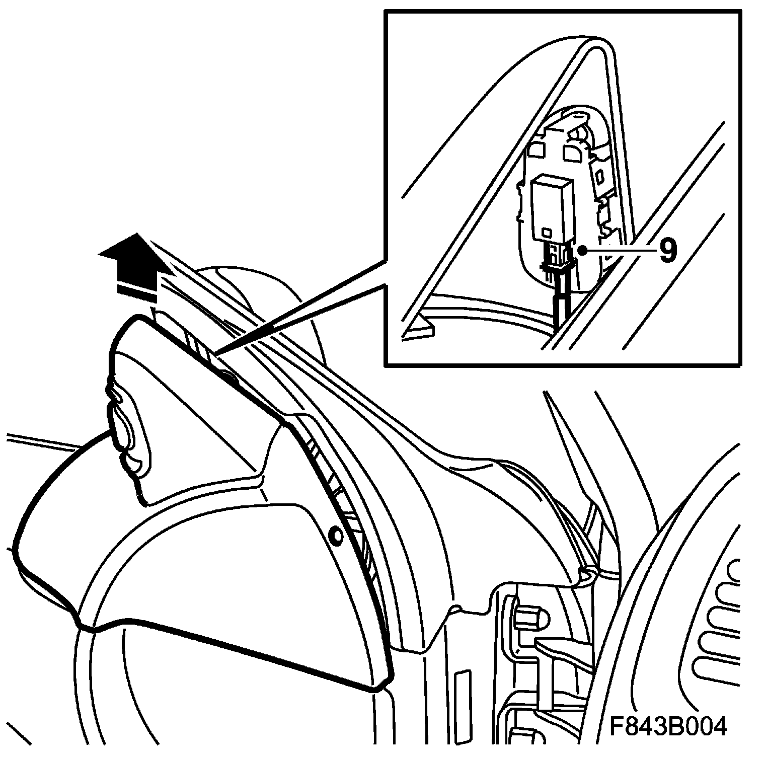 8. Remove the inner cover of the door mirror base by lifting the cover straight up.