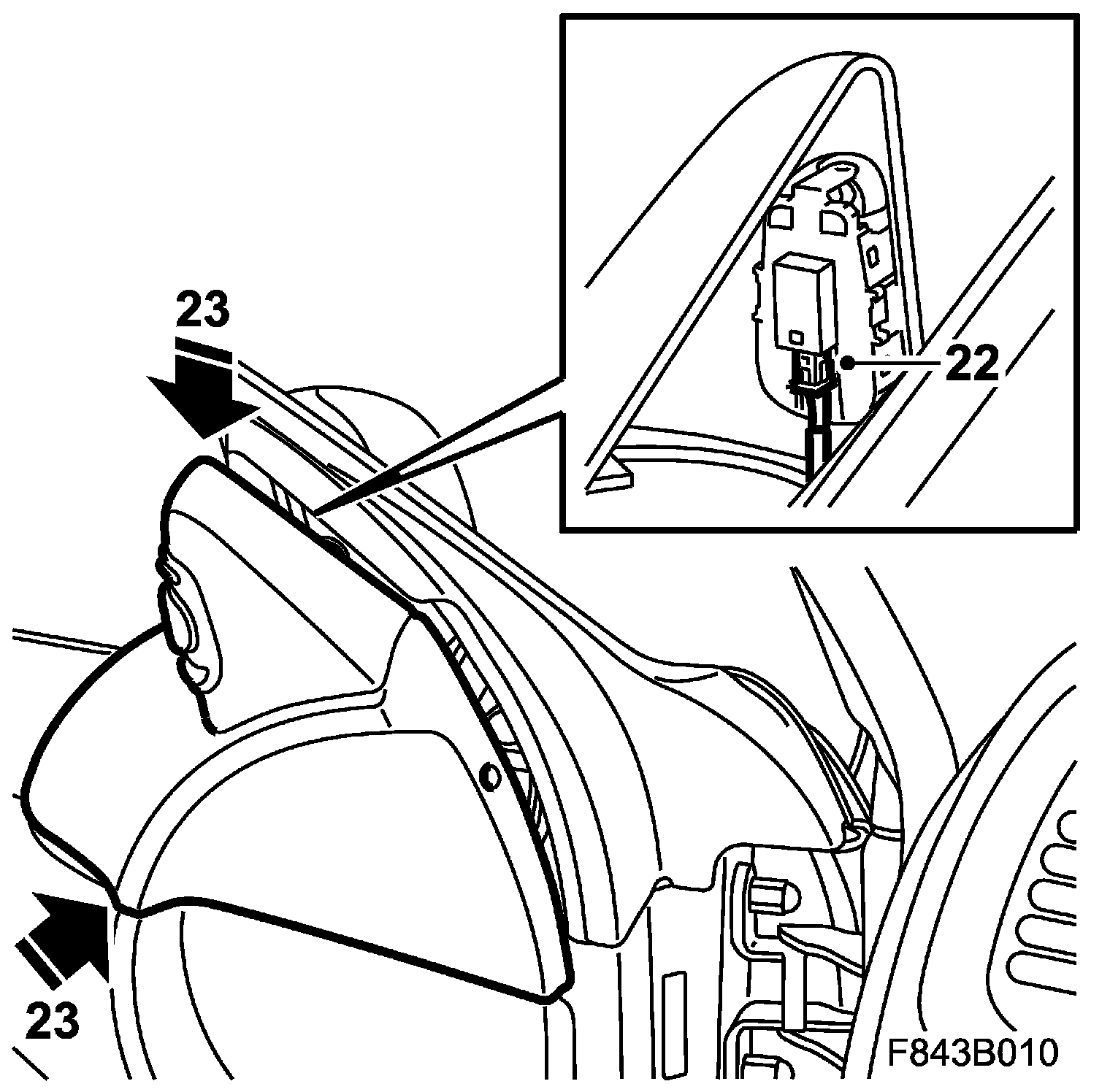 23. Fit the inner cover of the door mirror base by pressing it into place.