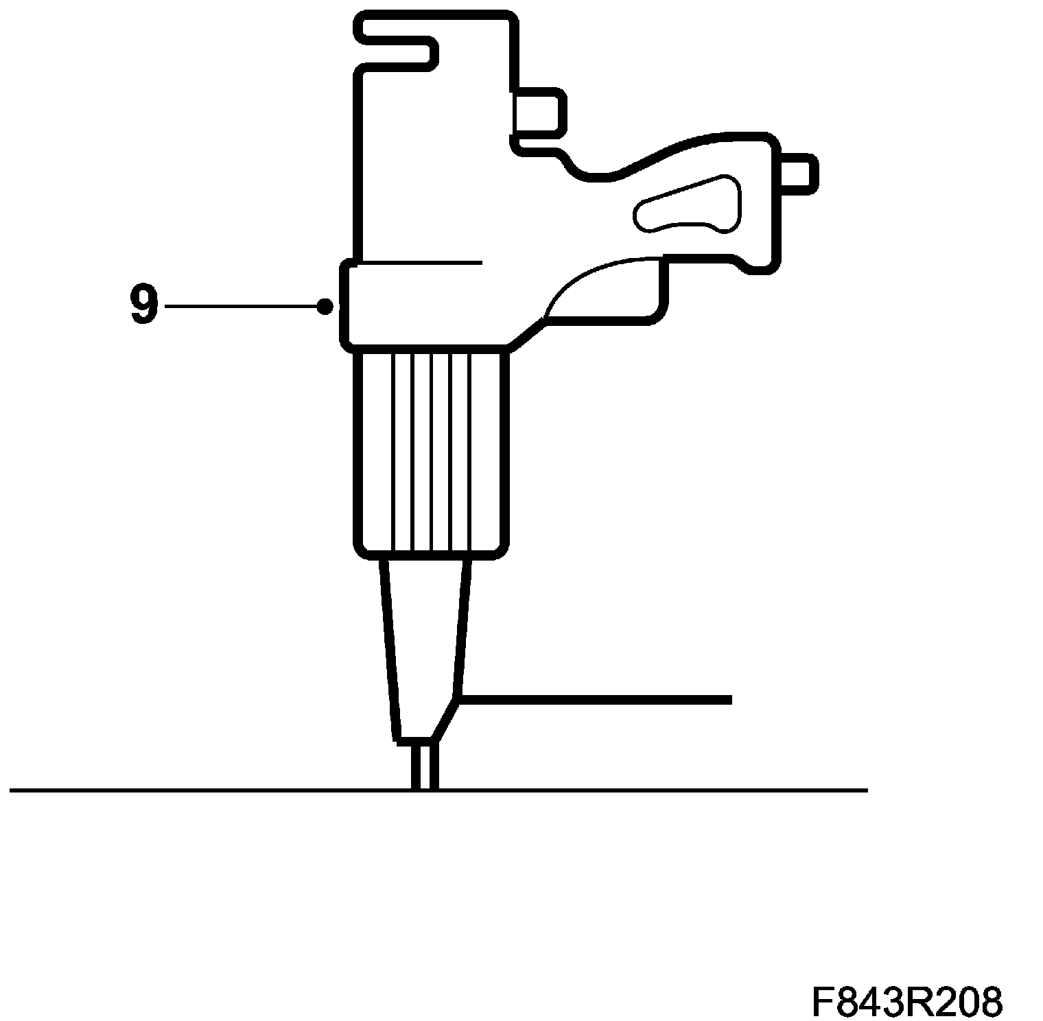 ^ Hold the gun perpendicular to the windscreen. Start at the bottom of the windscreen. Apply a bead of adhesive to the primed surface along the centre of the dotted line. When fitting an old windscreen the adhesive is applied to the old adhesive bead. (Neither primer nor cleaning agent may be used on the old bead.) Make sure there are no gaps in the adhesive bead.