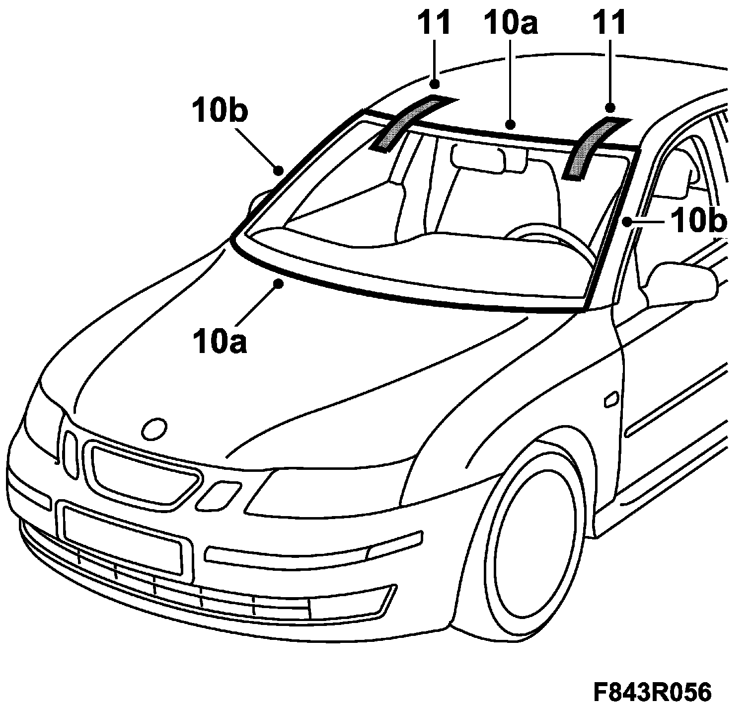 The car must be standing on all four wheels on a level surface when the windscreen is fitted in place. To ensure the best possible results, it is extremely important for all surfaces that have been cleaned or primed to be kept free from dust and dirt while work is in progress. The same goes for the adhesive when it has been applied. Once work has been started it should therefore be continued without interruption until the windscreen has been fitted and the adhesive hardened. The adhesive begins to harden as soon as the contents of both tubes are mixed. The windscreen must therefore be fitted into place within 5 minutes from the time that application of the bead of adhesive was first begun. Note that points 7-11 must without exception be carried out in the given order to ensure satisfactory results with maximum adhesion.