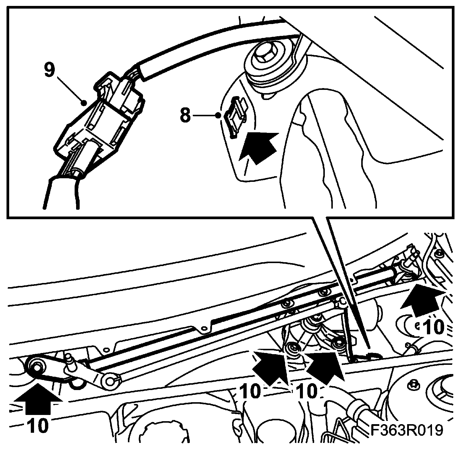 9. Position the cover over the right-hand wiper spindle.