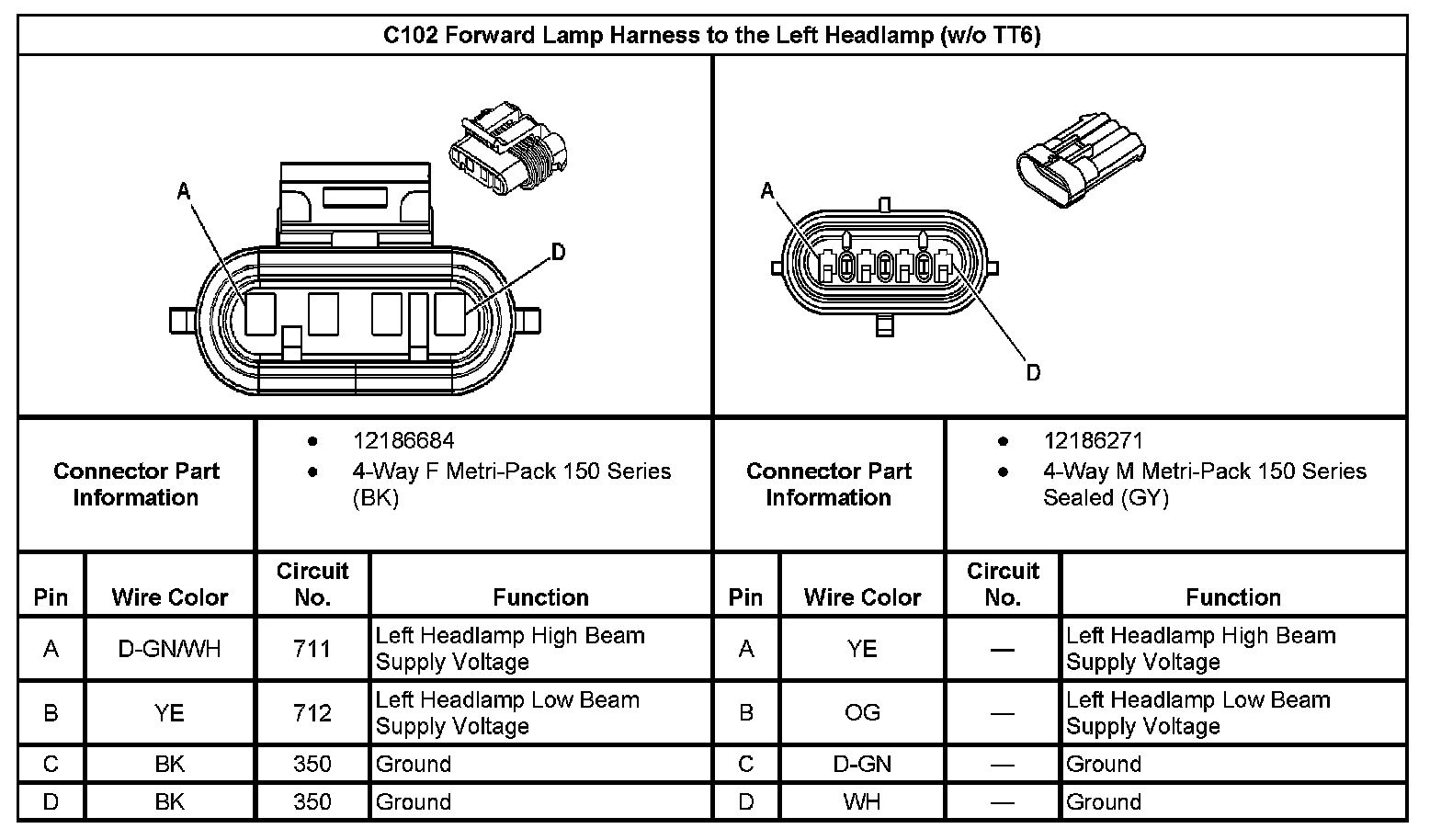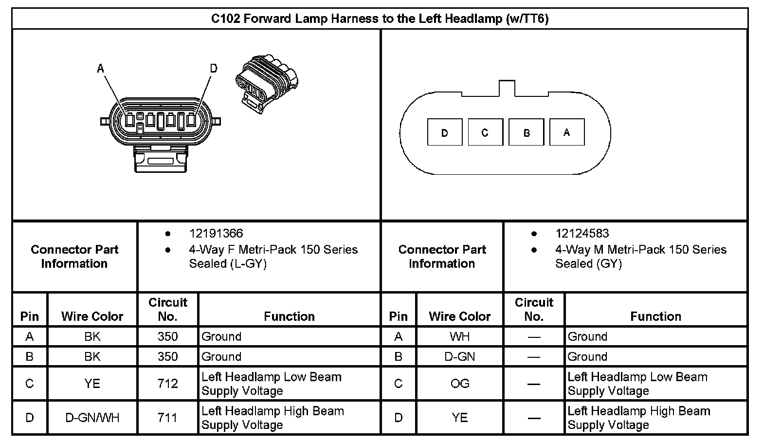 C102 Forward Lamp Harness to the Left Headlamp (Without RPO Code TT6):