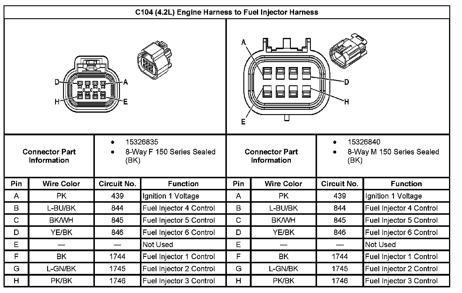 C104 Engine Harness to Fuel Injector Harness: