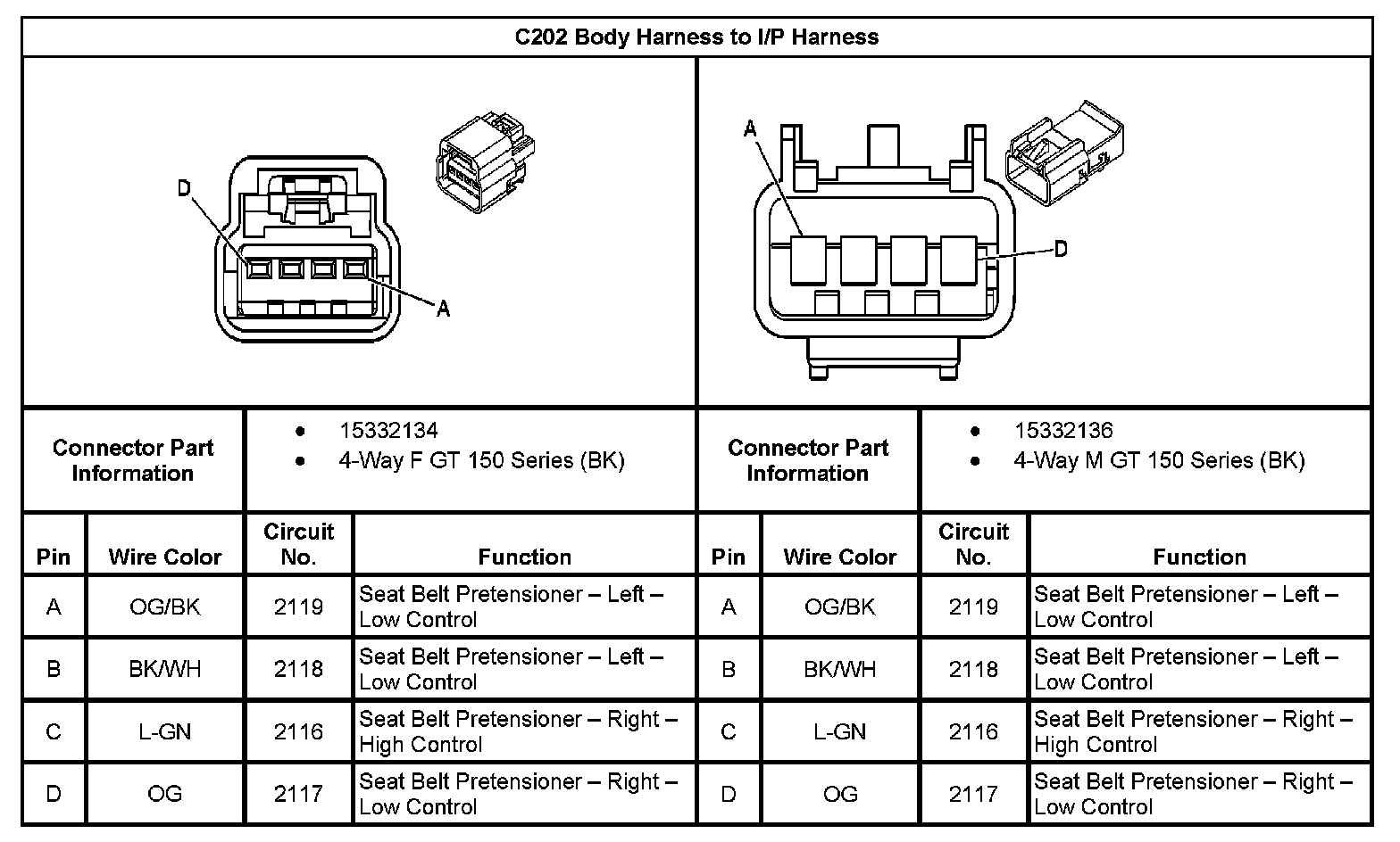 C202 Body Harness to I/P Harness: