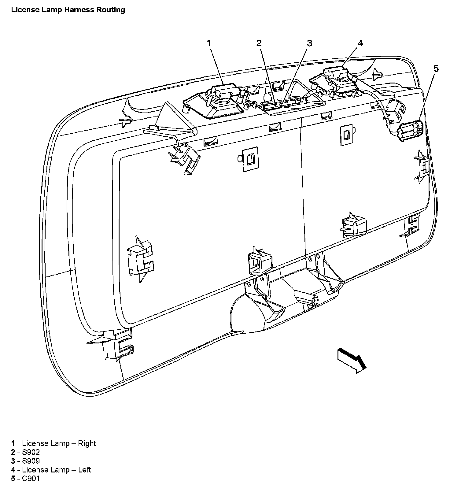 License Lamp Harness Routing: