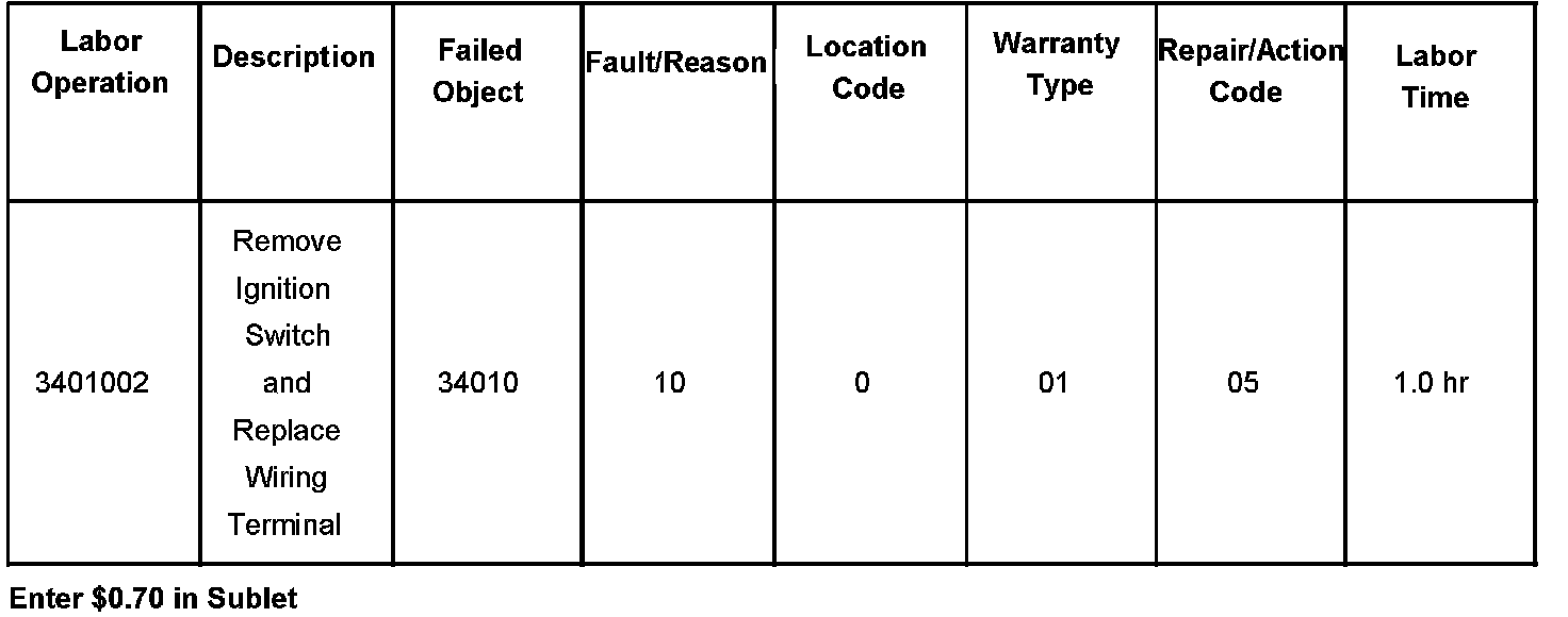For vehicles repaired under warranty, use the table,