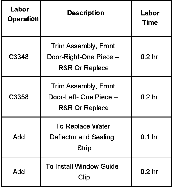 2. Remove the water deflector. Refer to Front Side Door Water Deflector Replacement in SI.