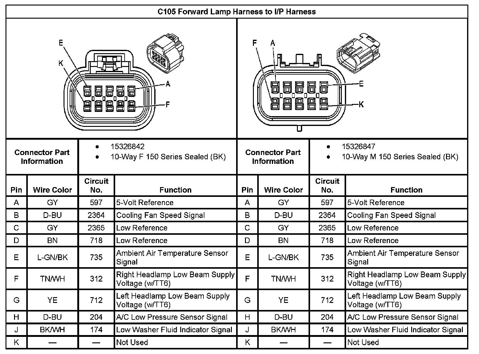 C105 Forward Lamp Harness to I/P Harness: