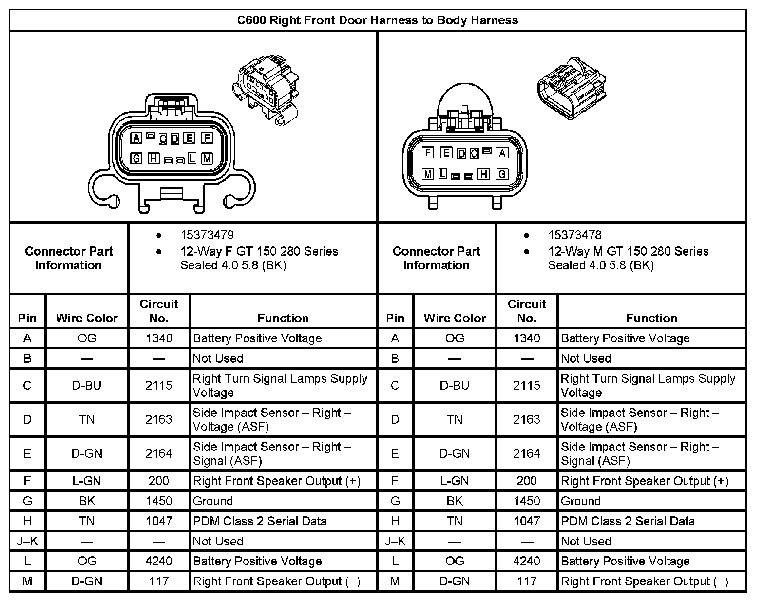 C600 Right Front Door Harness to Body Harness: