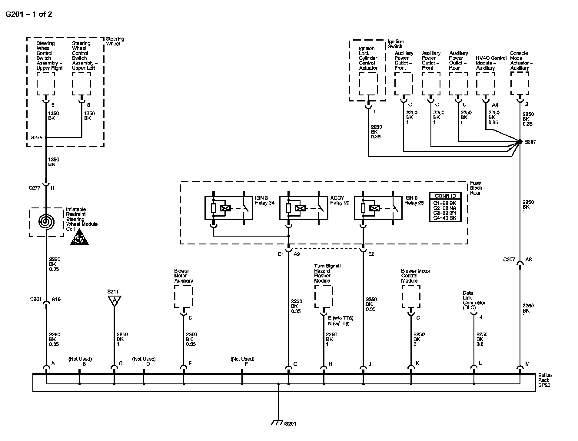 Locations: The locations for the Connectors, Grounds, Splices, and Grommets shown within these diagrams can be found via their numbers at Vehicle Locations. Locations
