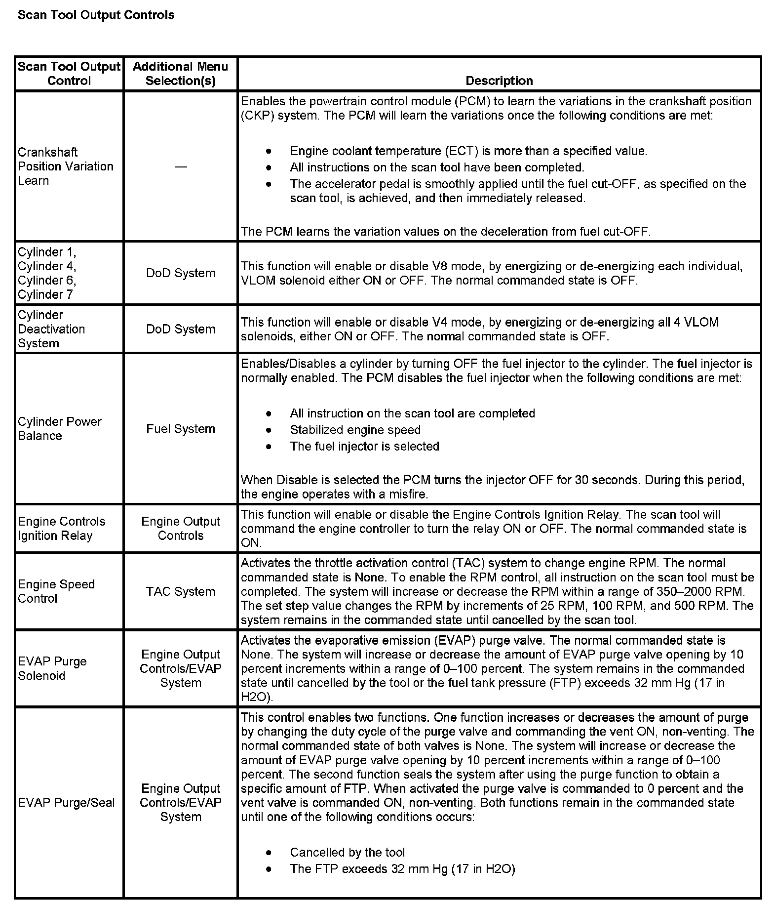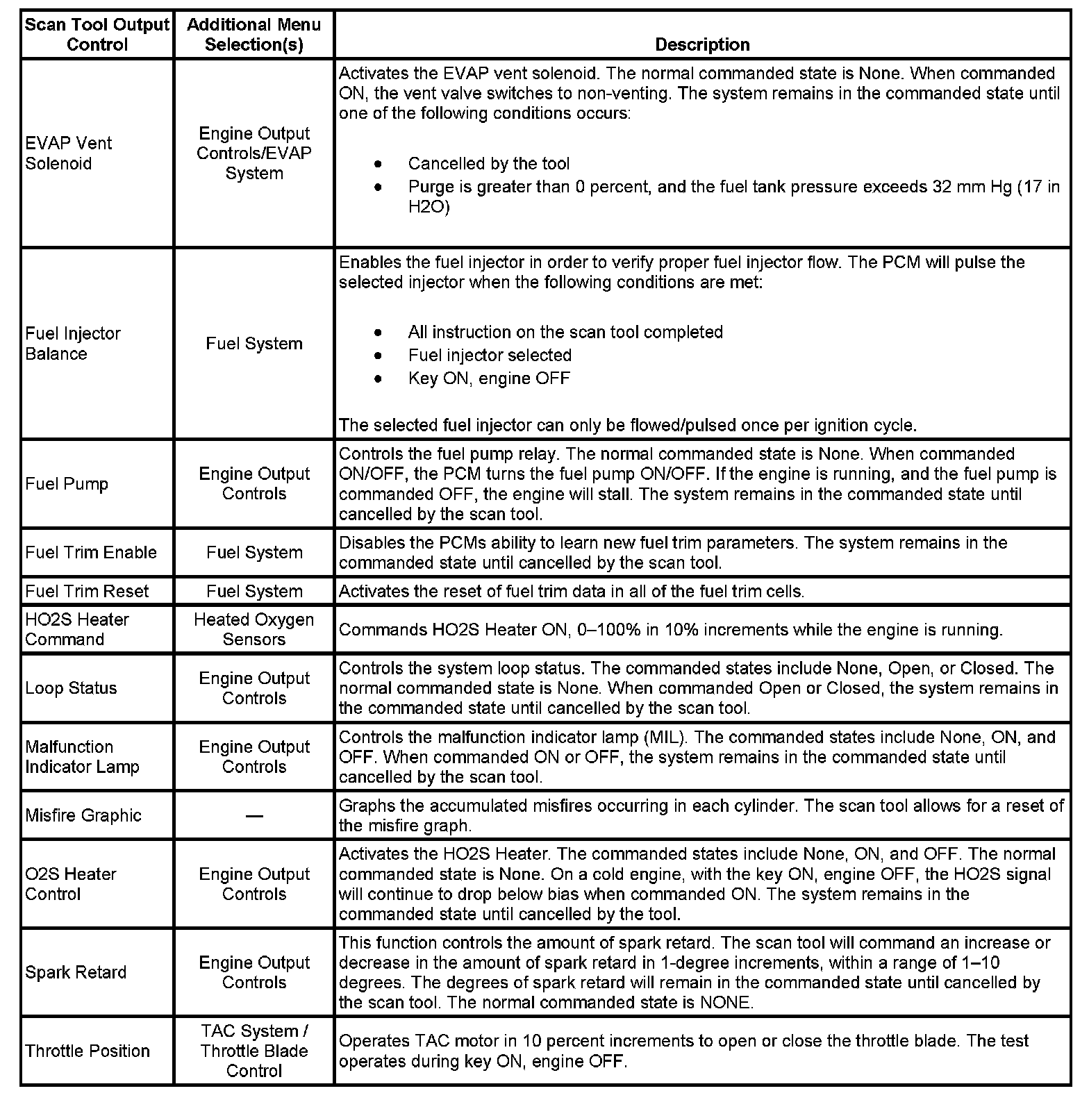 Scan Tool Output Controls