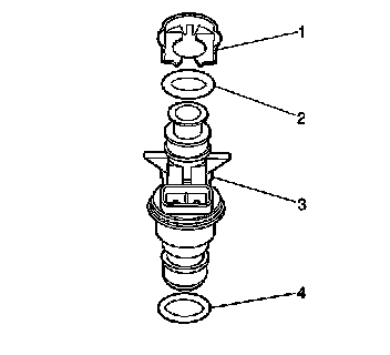 2. Install the NEW injector O-ring seals (2 and 4) onto the injector (3).