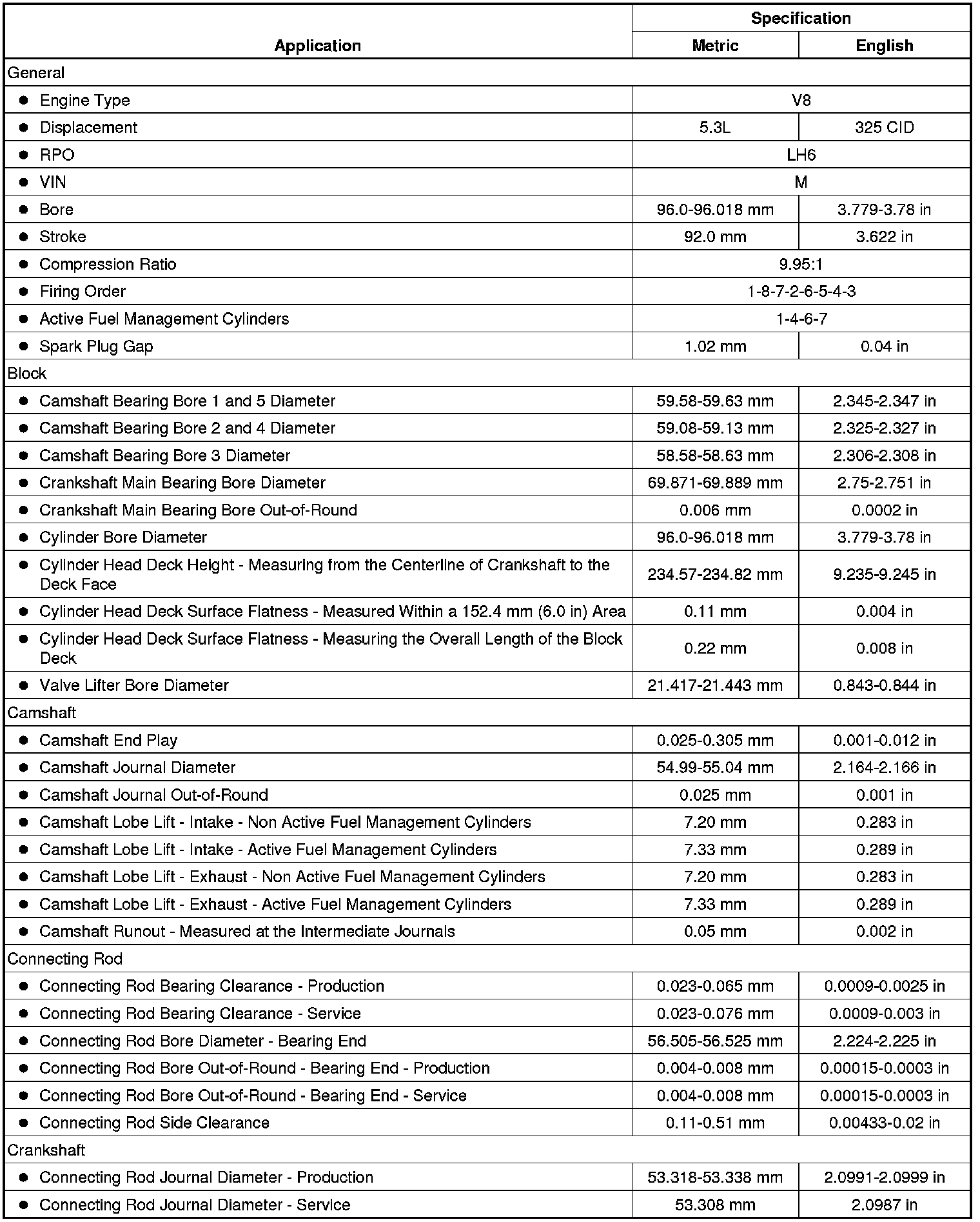 Engine Mechanical Specifications (5.3L)