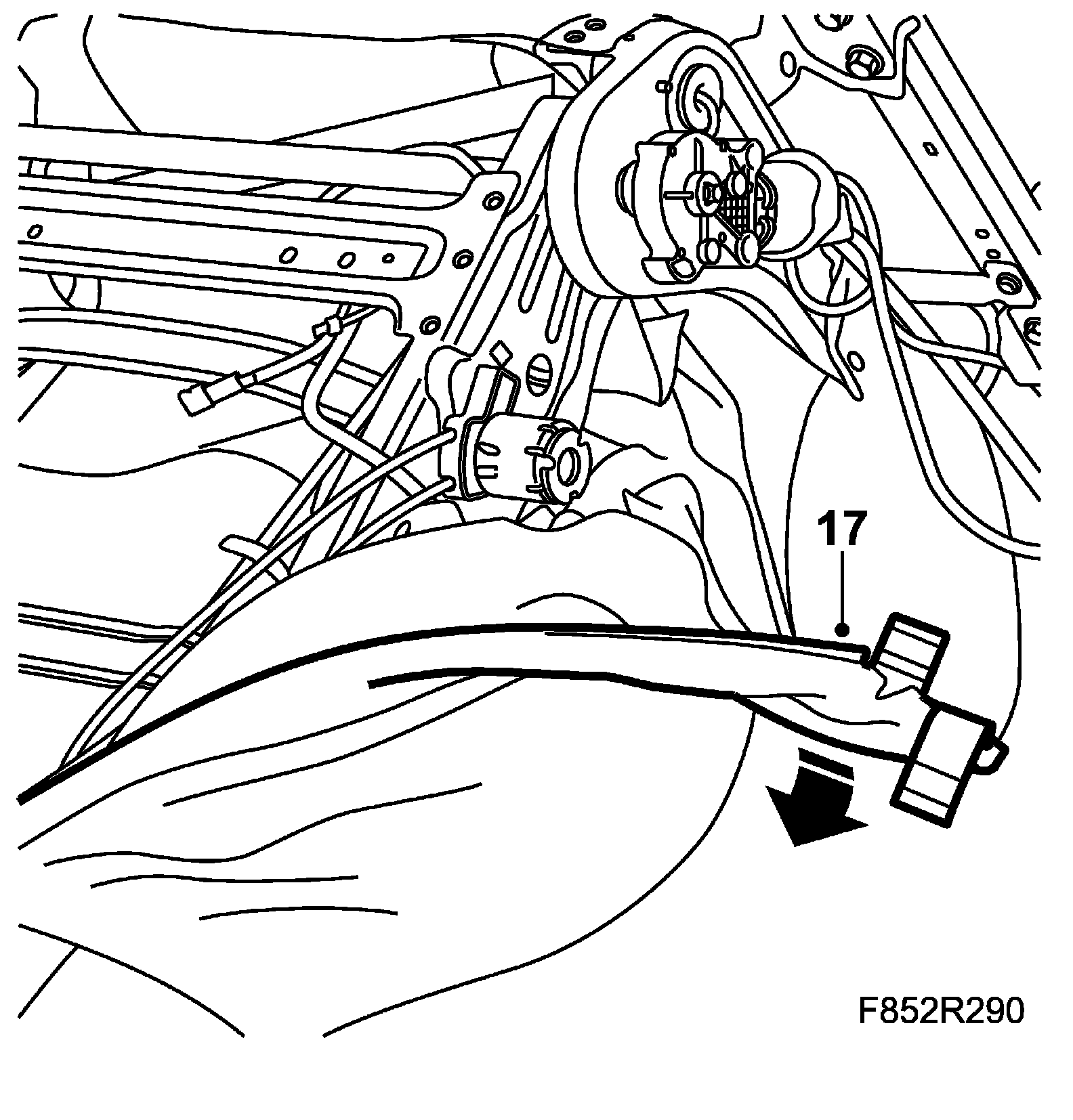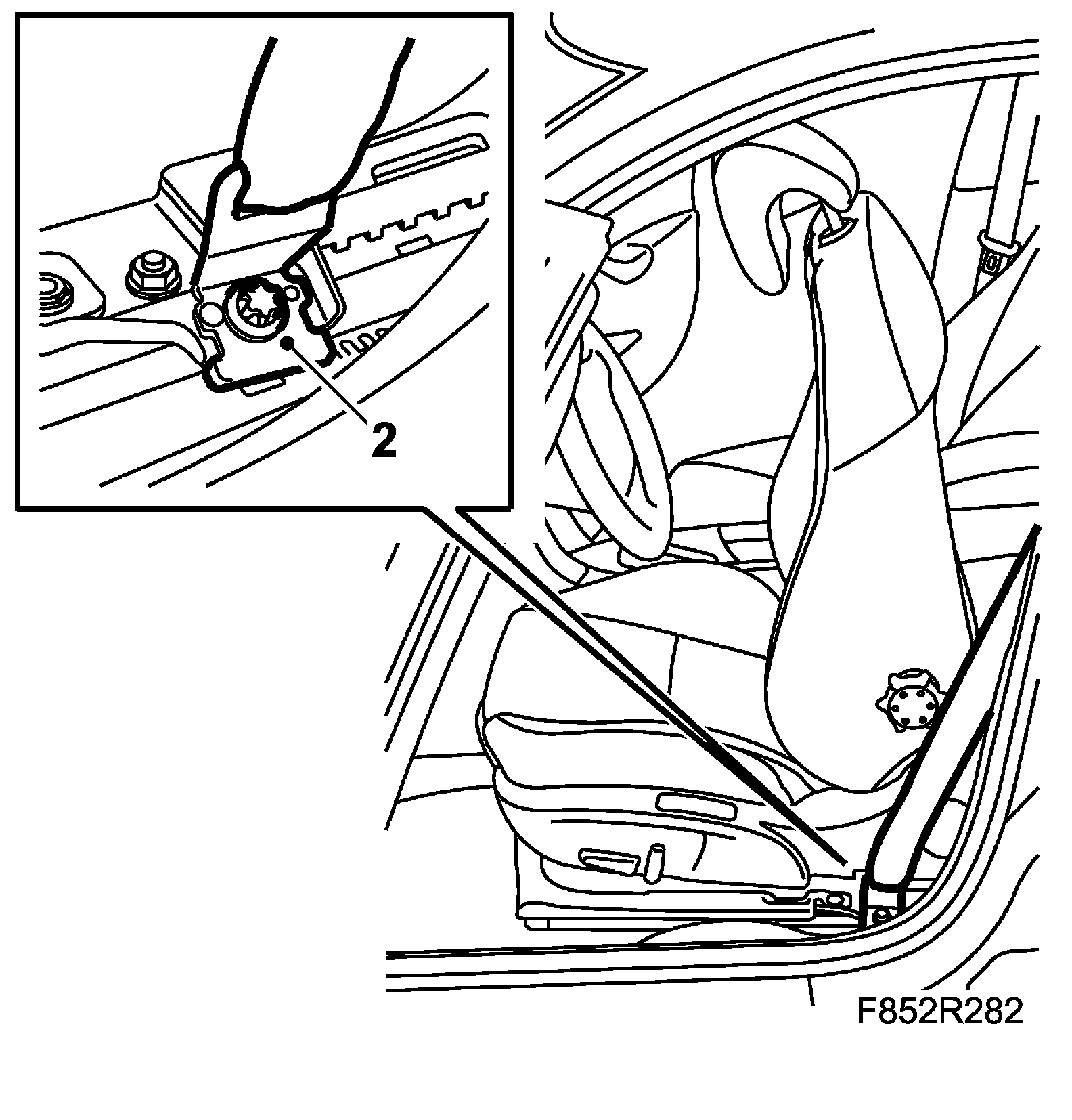 5. Fit the clip holding the cable for the side airbag.