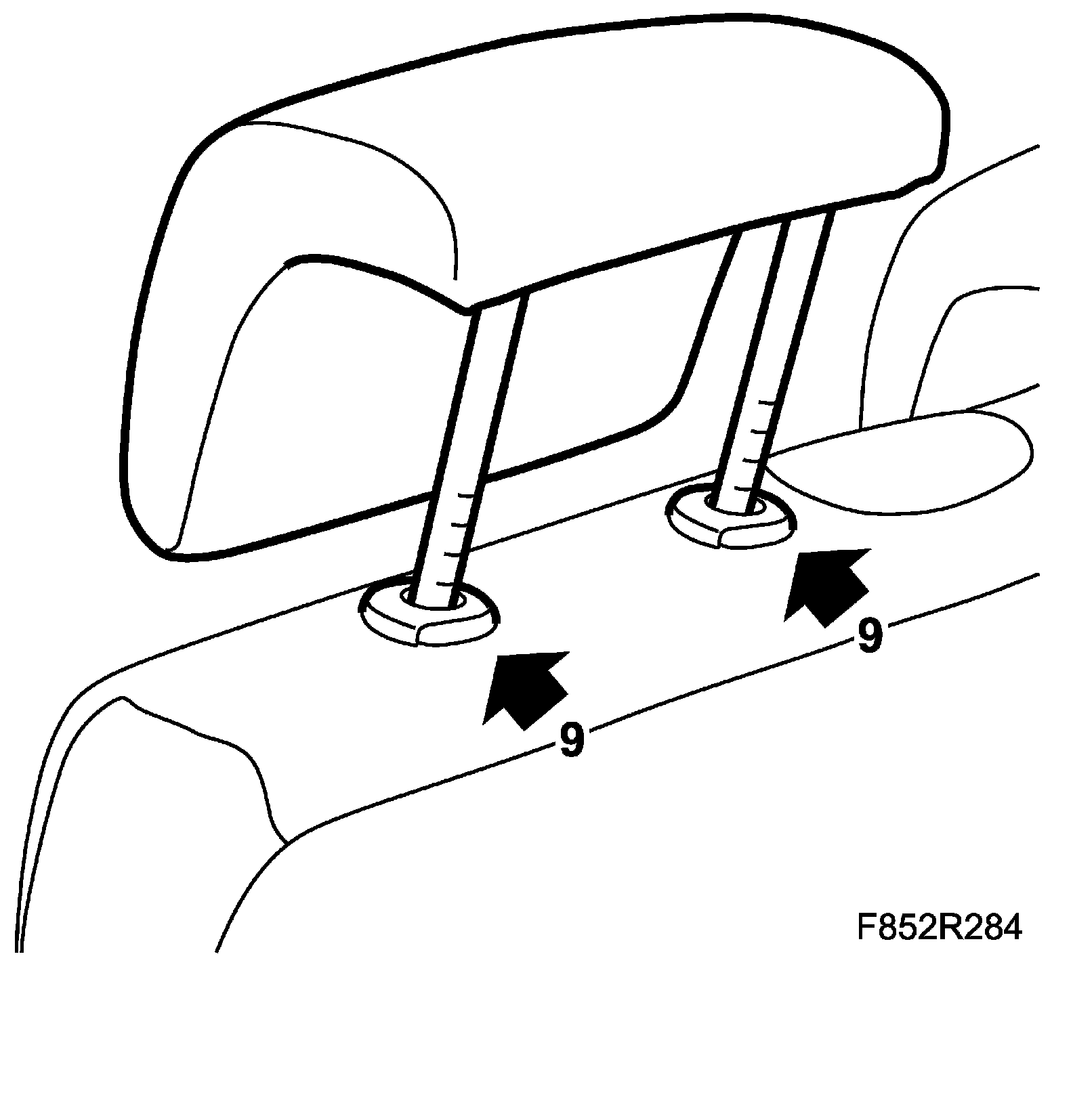 9. Remove the head restraint by pressing the catches while pulling out the head restraint.