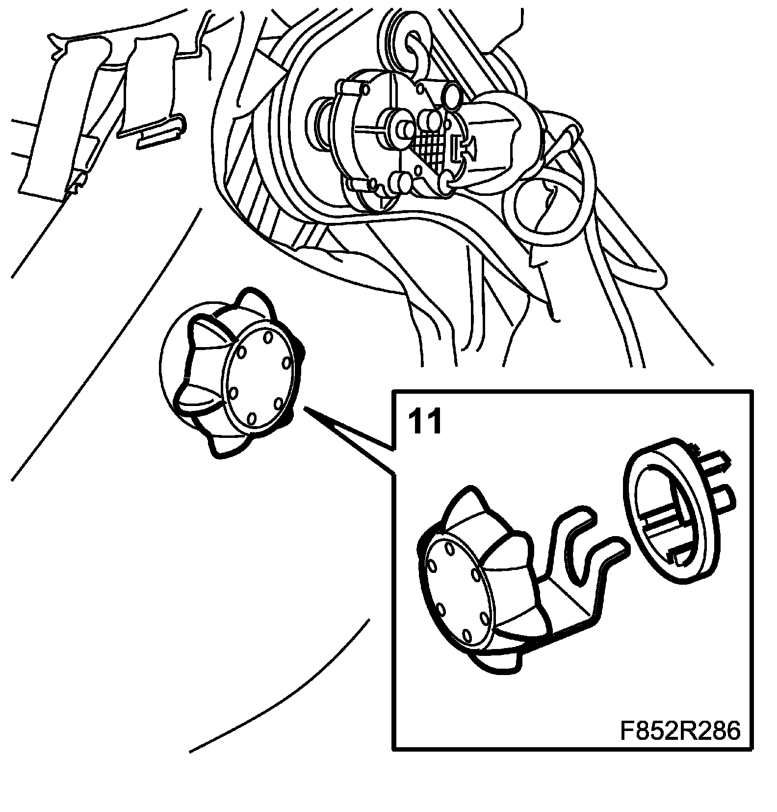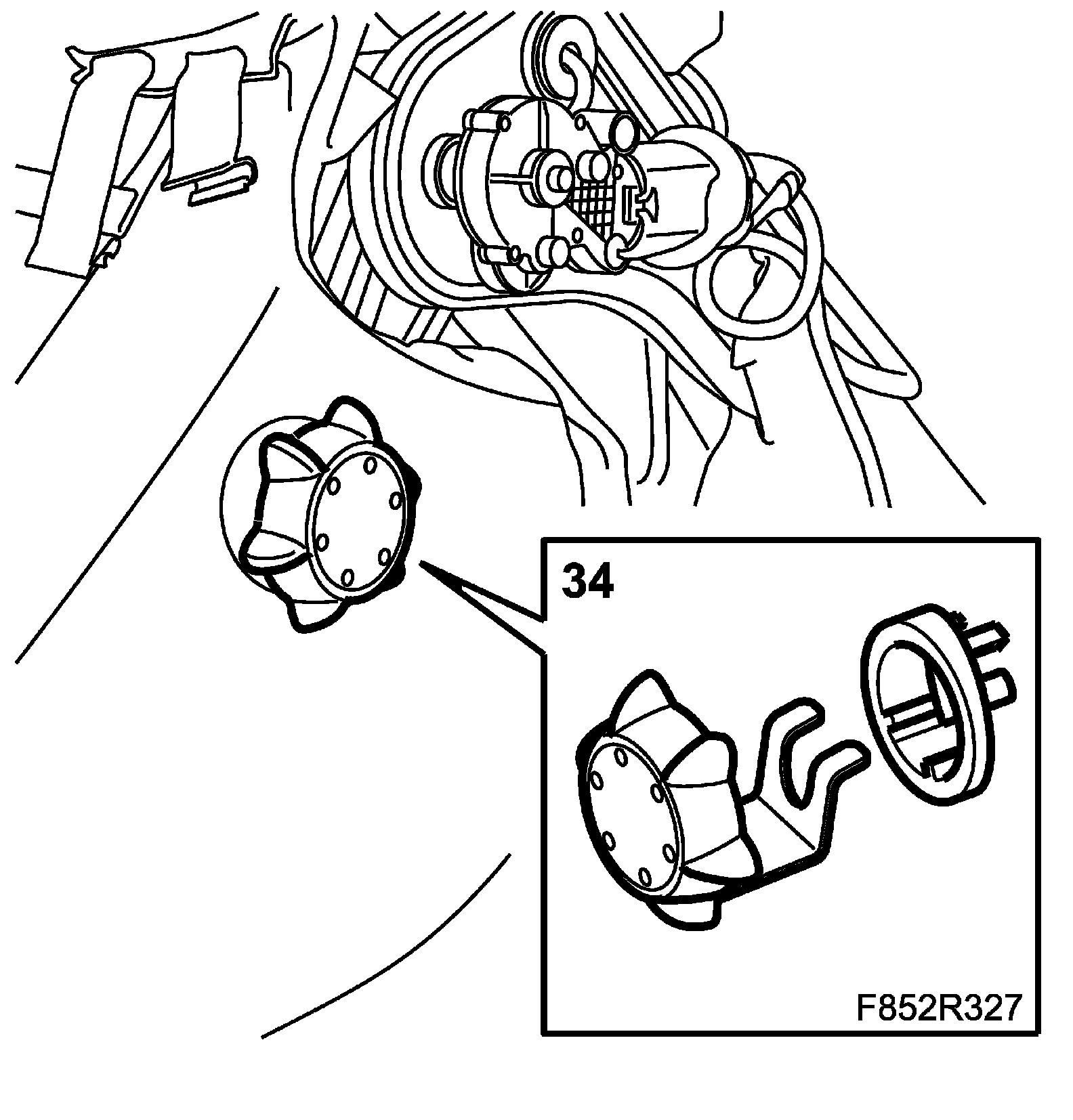 IMPORTANT: Take care when plugging in the connector so as not to damage or press out the pins/sleeves in the connector. For further information regarding connectors, refer to Connectors, handling and inspection.
