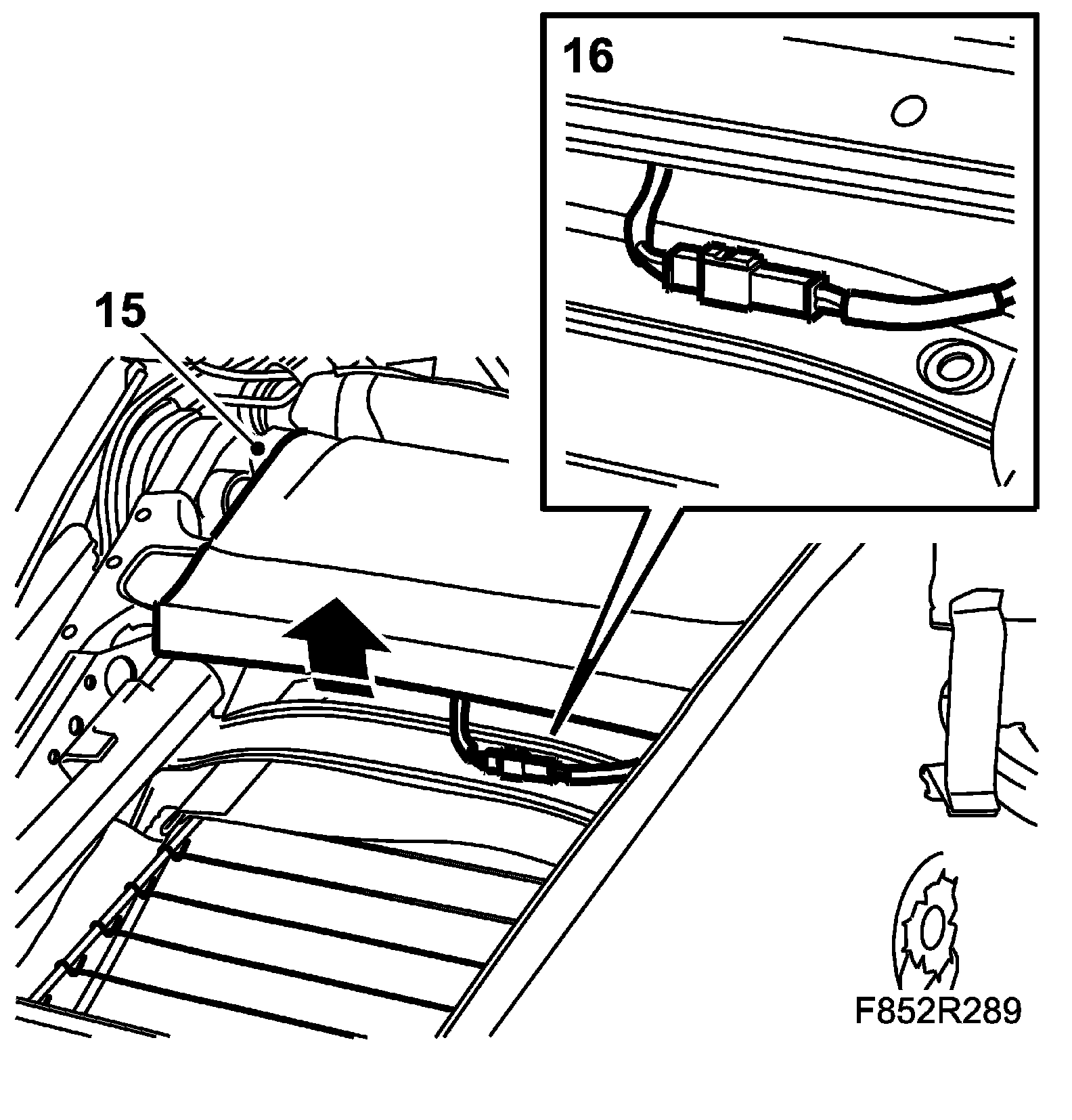 15. Press in the seat position sensor on the top of the seat rail.