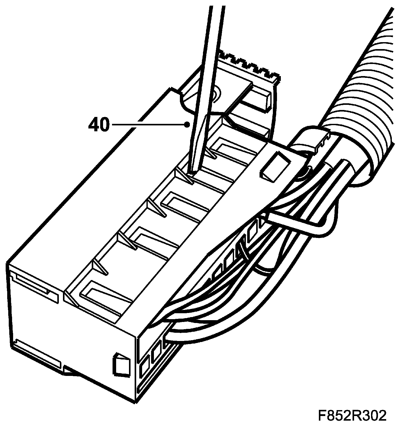 IMPORTANT: Take care when releasing the locking mechanism on the connector so as not to damage the connector. Pull the halves straight apart to avoid bending the pins. For further information regarding connectors, refer to Connectors, handling and inspection.