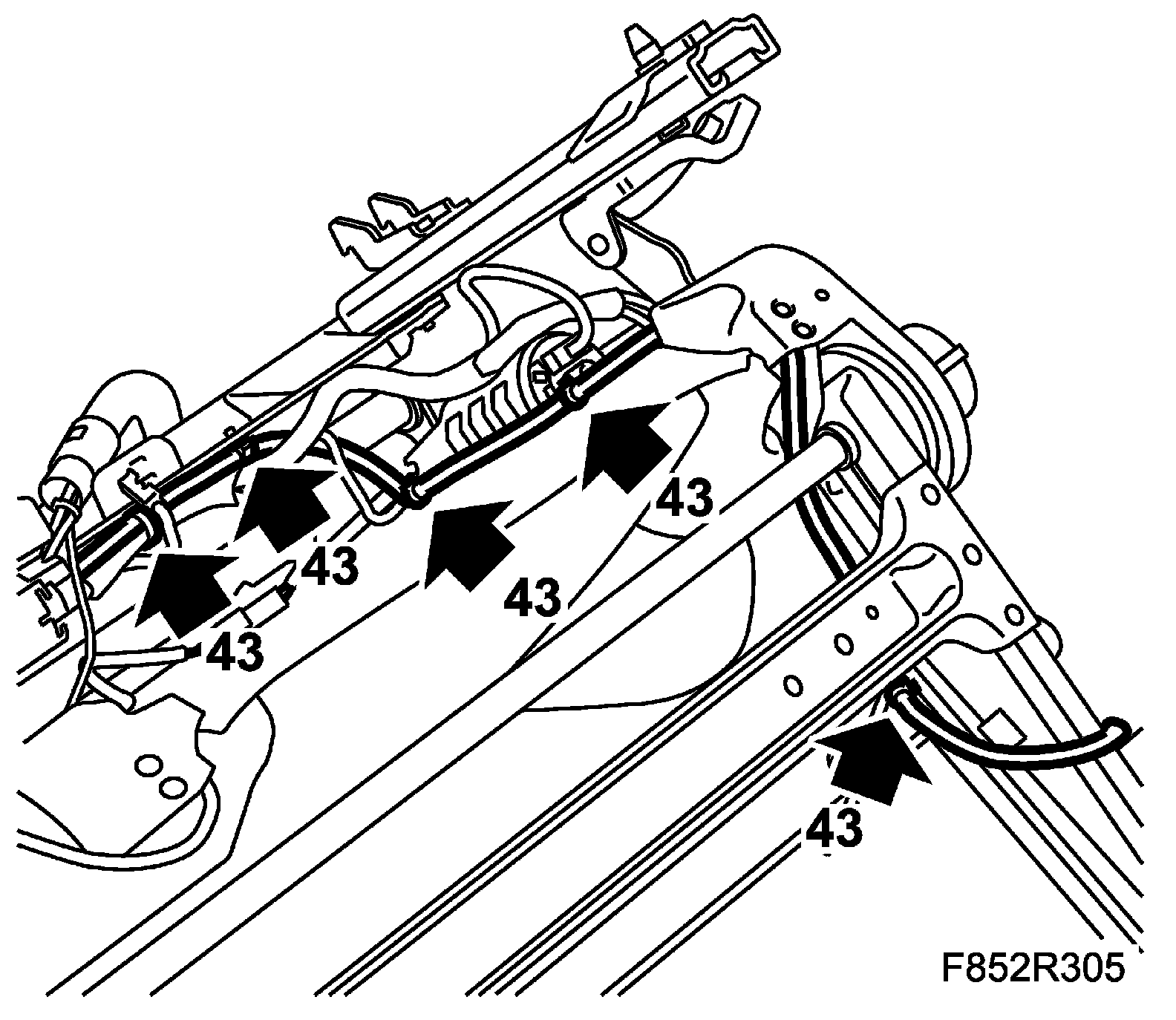 46. Undo the seat wiring harness from the seat frame. Note how the wiring harness is routed and its fixing points.