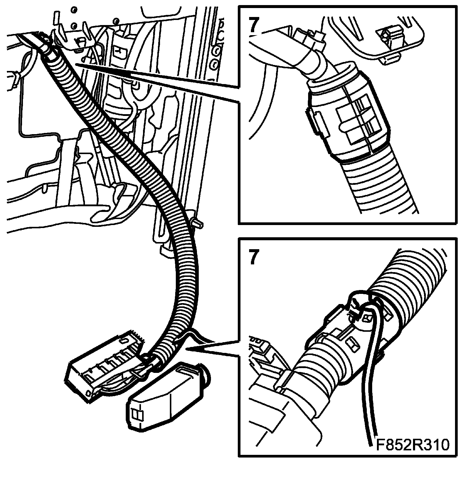 2. Fit the seat wiring harness and fix it.