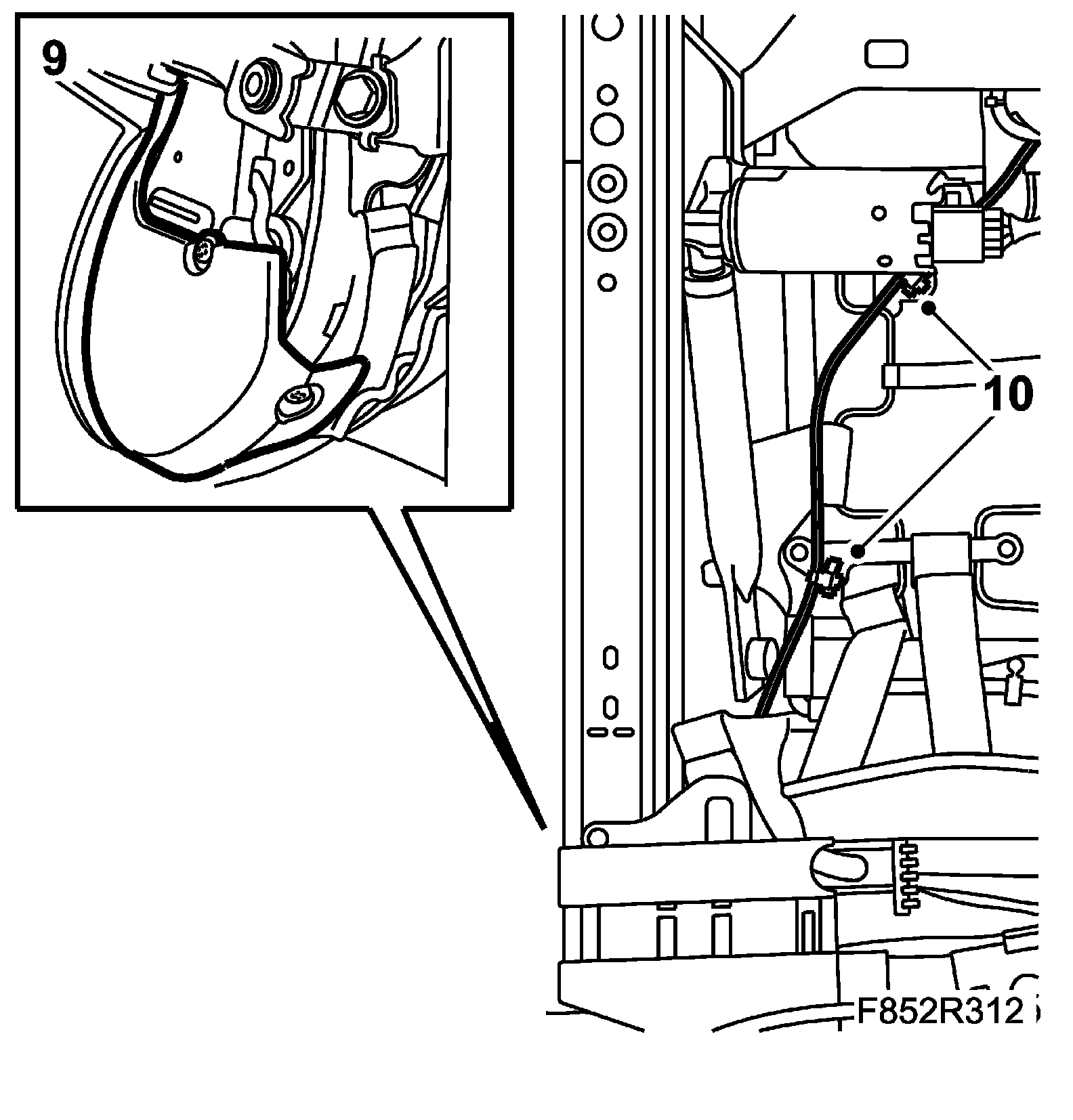 13. Fix the seat position sensor cable to the seat rail.