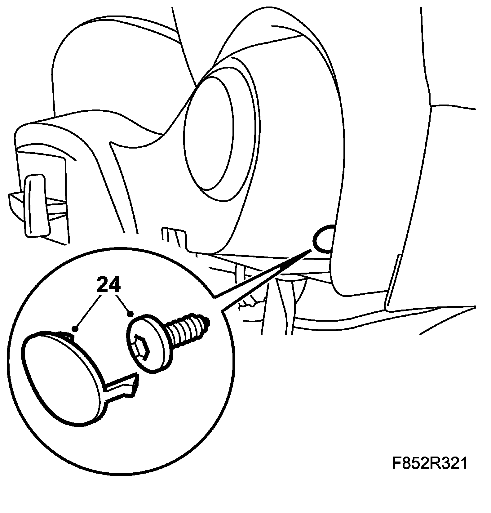 24. Fit the side panel rear bolt and protective cover.