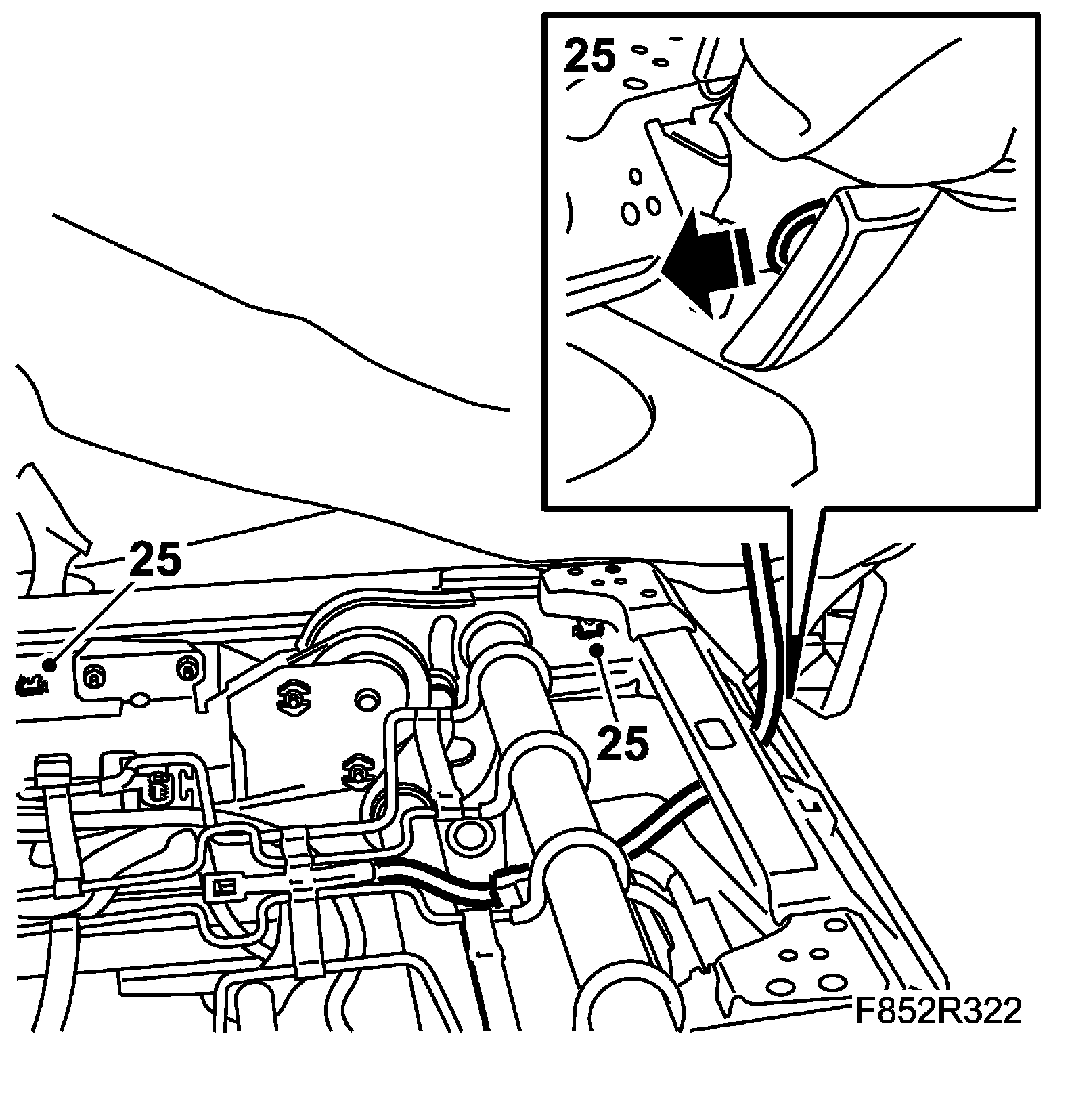 25. Fit the front R-clip to the side panel.