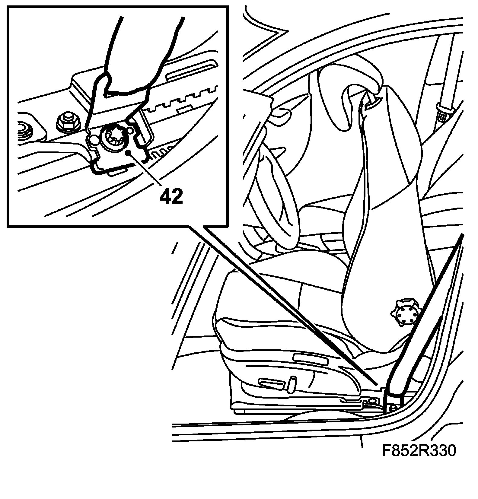 42. Fit the seatbelt mounting and cover to the seat.