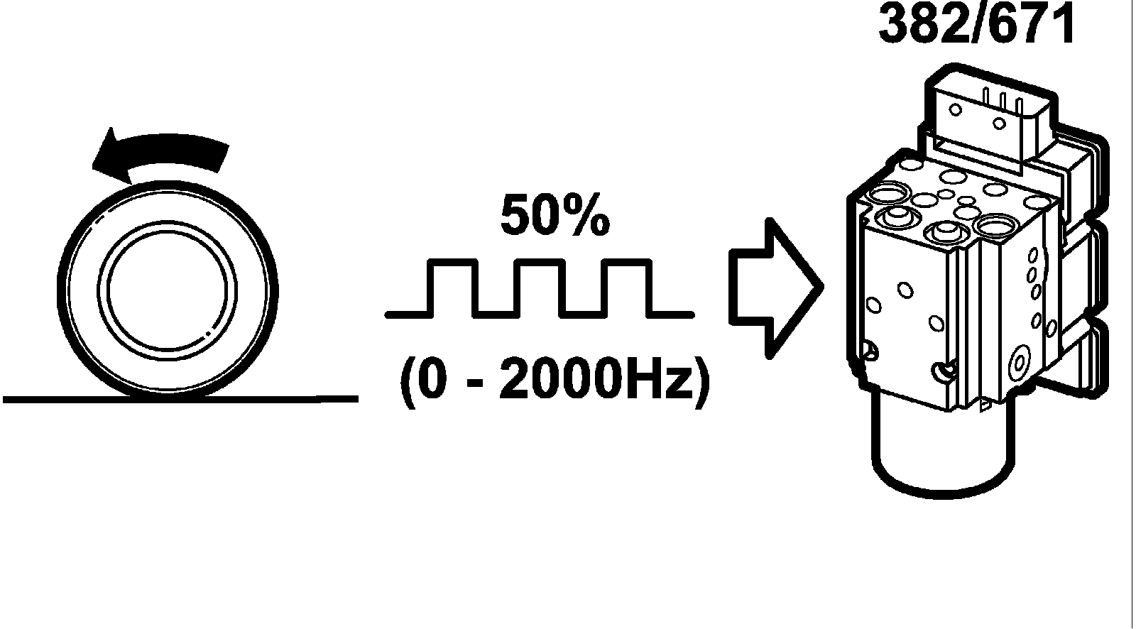 From the wheel sensors (front/ rear), the control module receives information on the wheel speed. The control module uses this information on wheel speed to calculate the speed of the wheels in relation to each other.