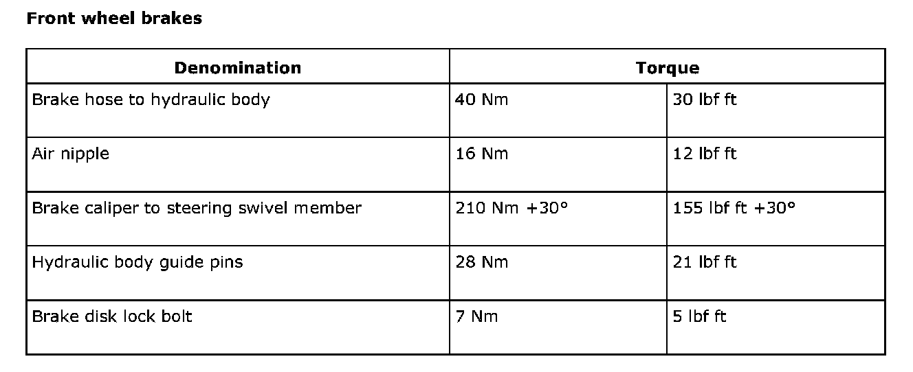 Torque Specifications