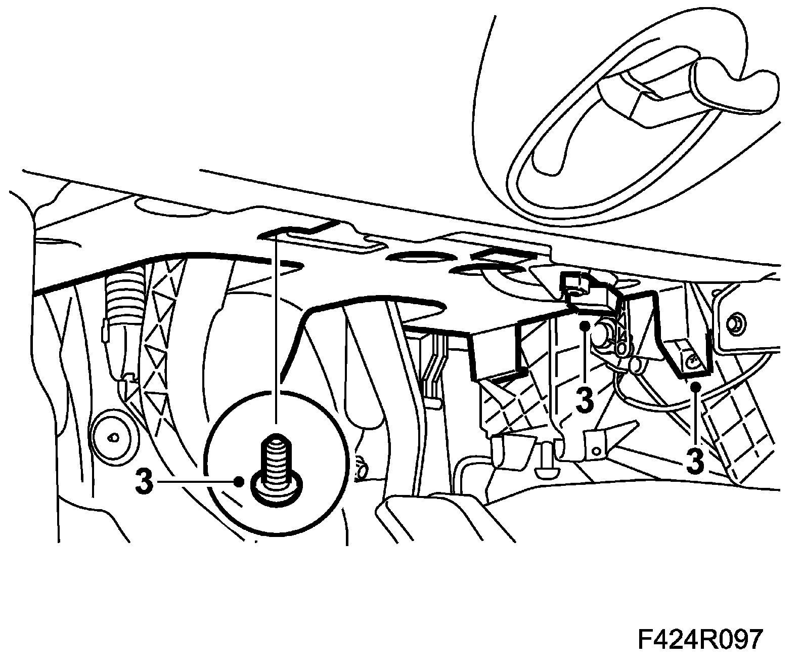 3. Fit the 2 sound insulating baffle screws to the climate housing and instrument panel.