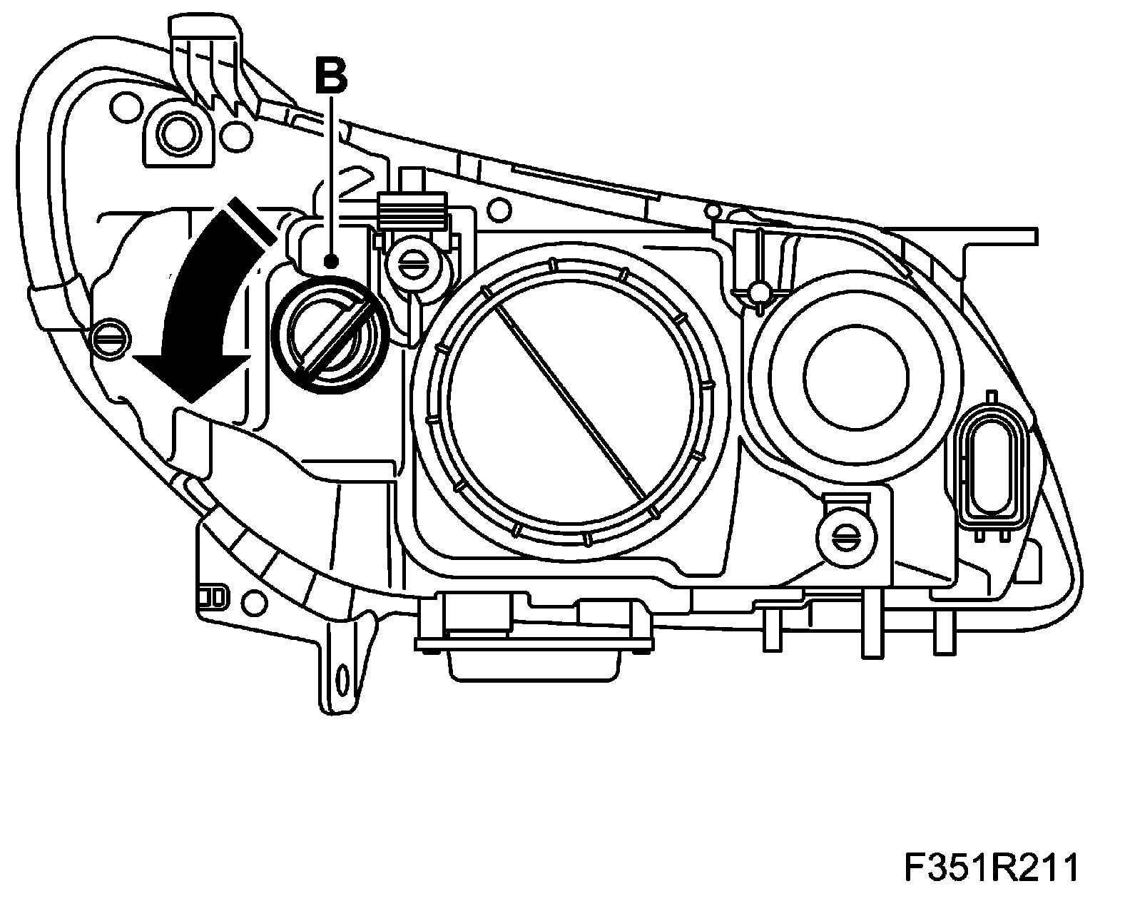 ^ Turn the bulb socket (B) anticlockwise and lift out the socket.