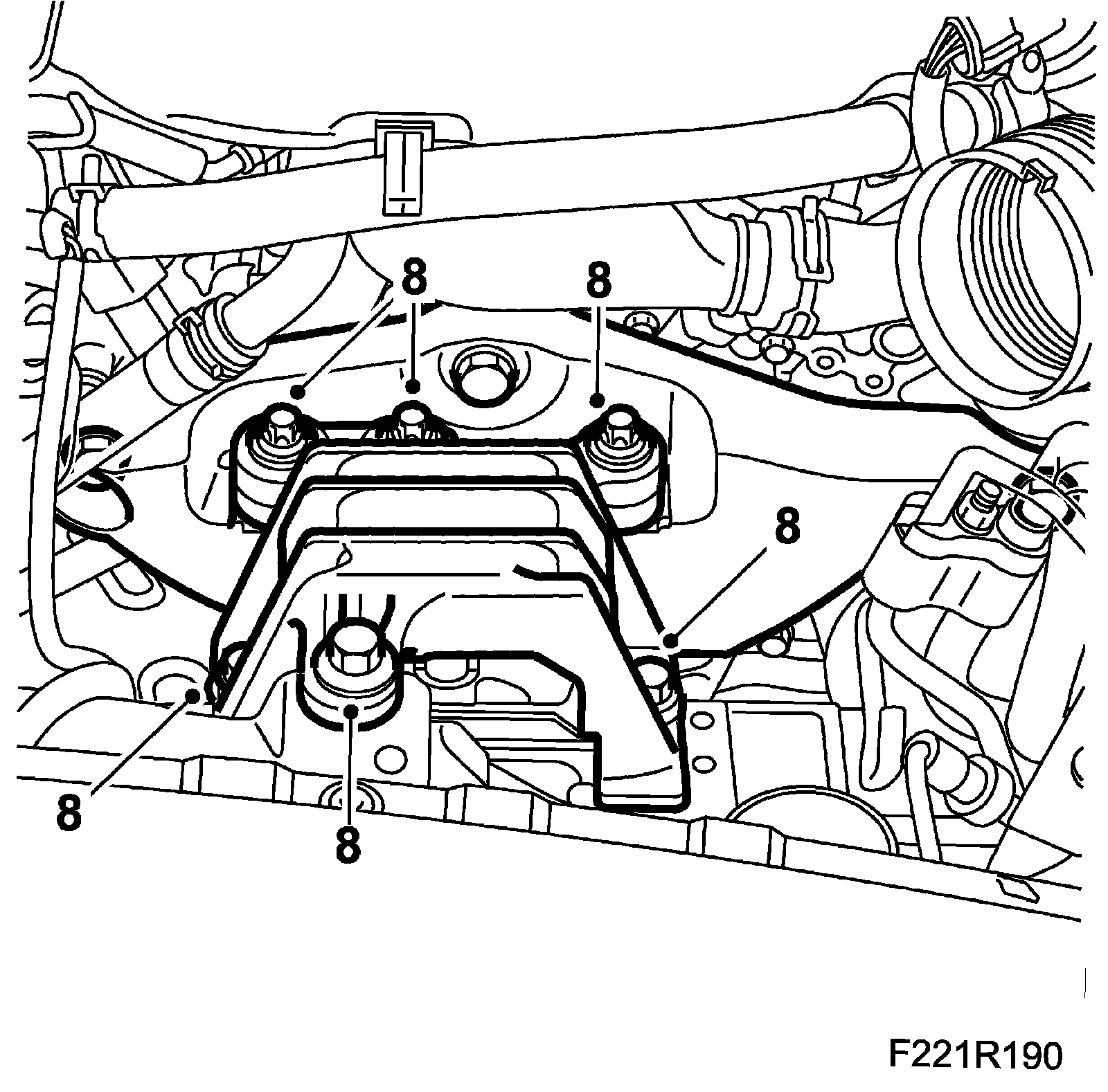 Tightening torque to engine mounting: 45 Nm + 90 degrees (33 lbf ft + 90 degrees)