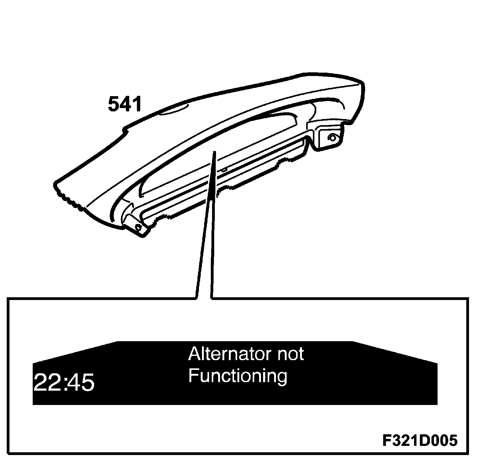 The charge warning indicator advises the driver whether or not the generator is charging. If the generator is not charging then a symbol is shown as well as a warning text in the SID. When no warning message is shown, the generator is charging. Information on the generator's charging status is sent via a cable to the engine control module. The MIU receives information via a bus message from the engine control module as to whether or not the generator is charging. A warning indicator is shown in the SID. When the ignition is on and the engine is not running there is no warning message shown in the SID.