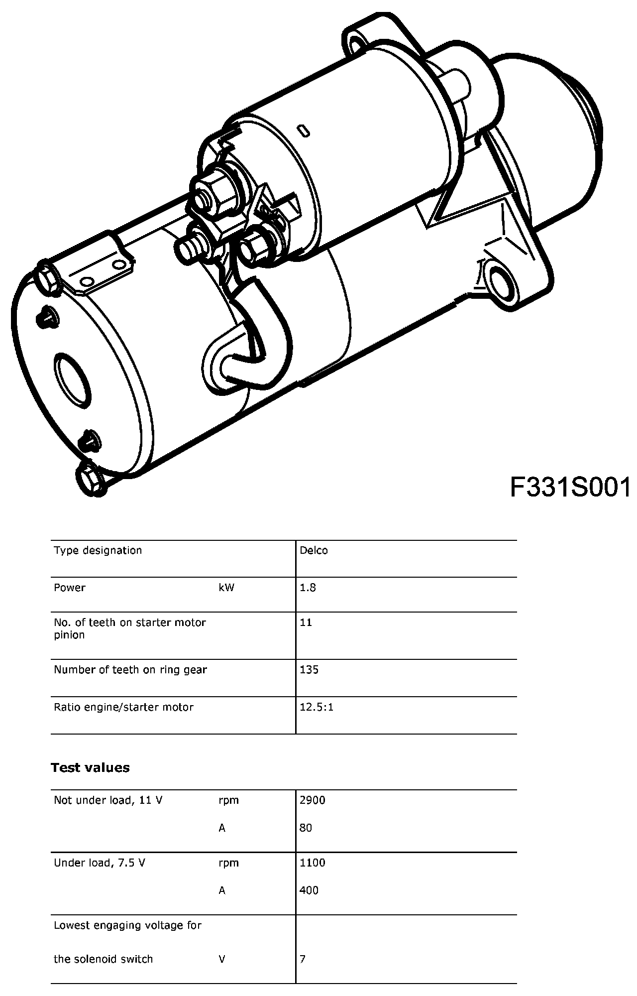 Starter Motor: Specifications