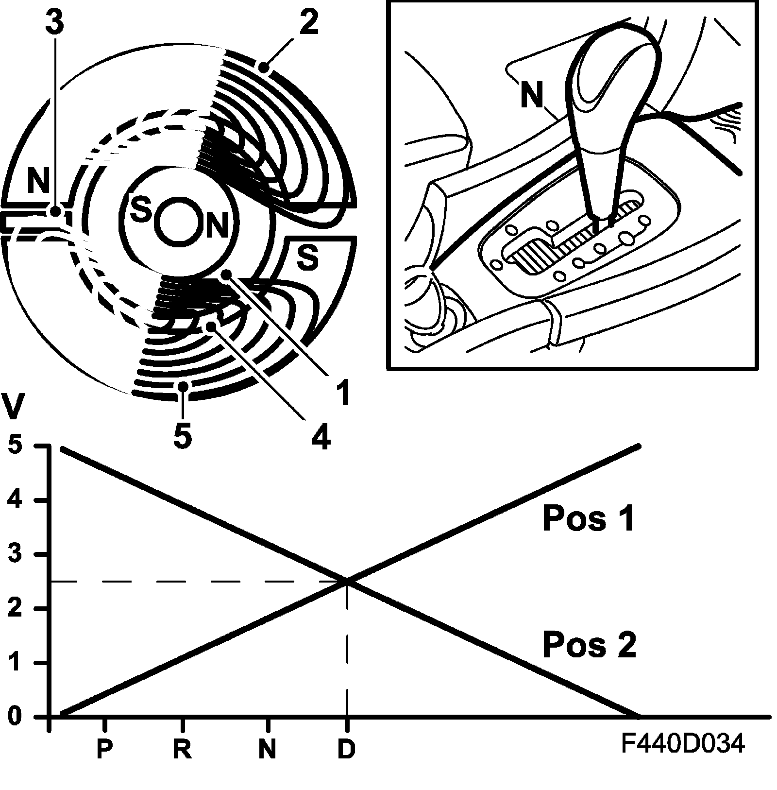 The TCM is mounted directly on top of the gearbox. The selector lever is integrated in the control module. The TCM is mounted so that the selector lever shaft goes through the control module. The selector lever position is calibrated with Tech2, there is no mechanical adjustment.