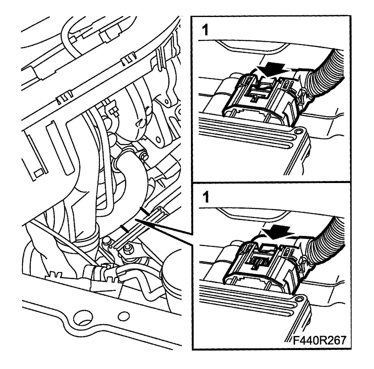 Important: Take care when plugging in the connector so as not to damage or press out the pins/sleeves in the connector. For further information regarding connectors, refer to Connectors, handling and inspection.
